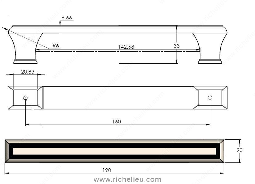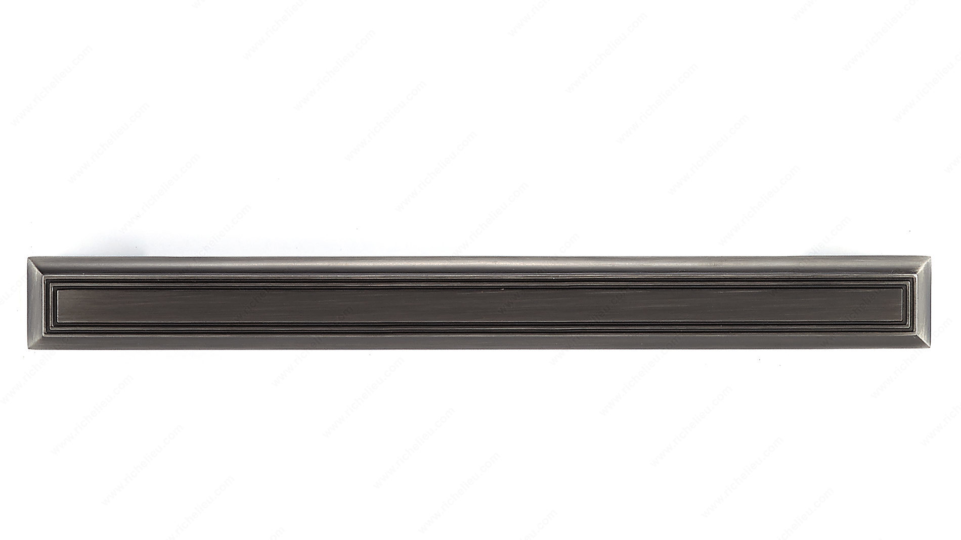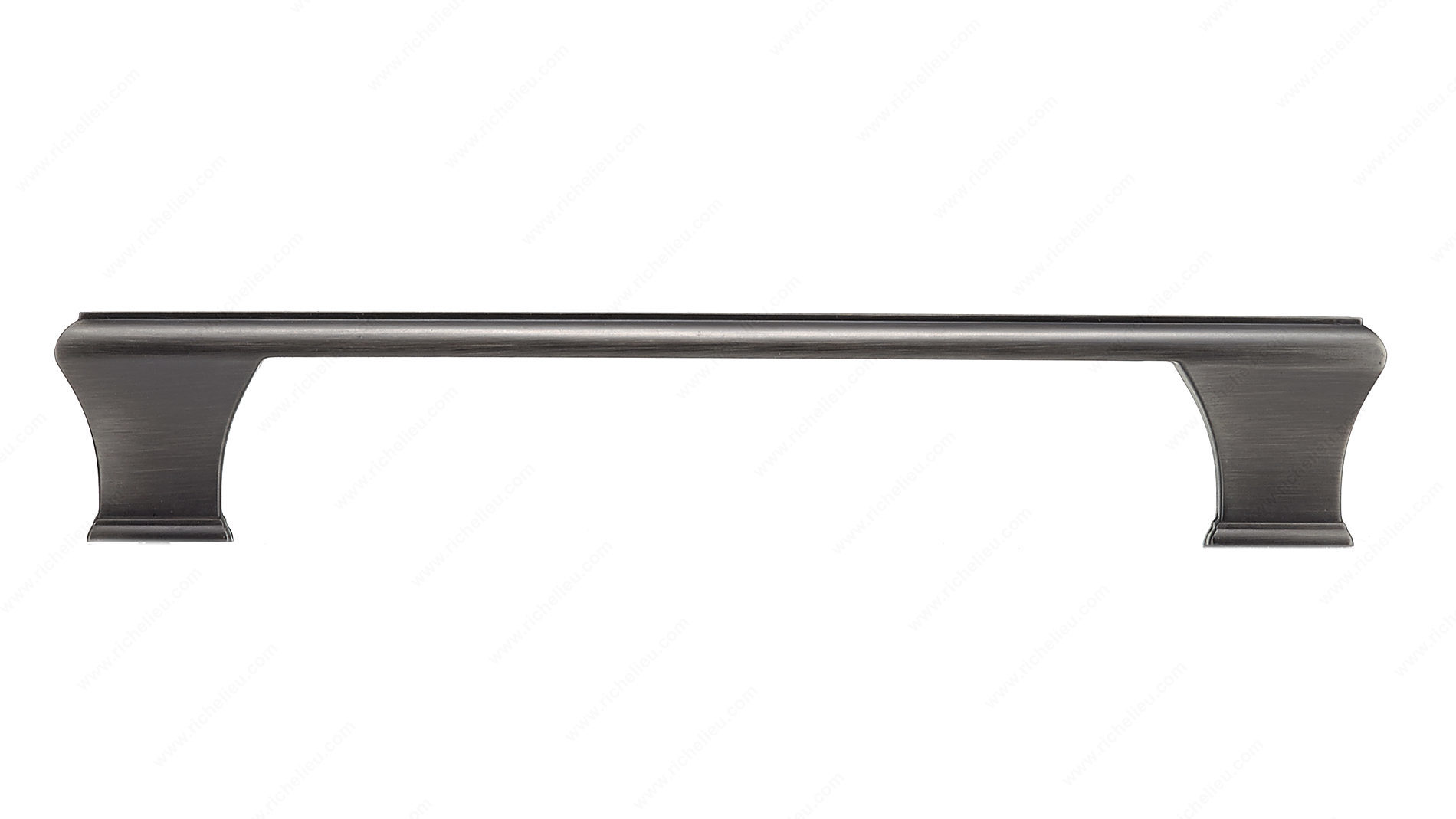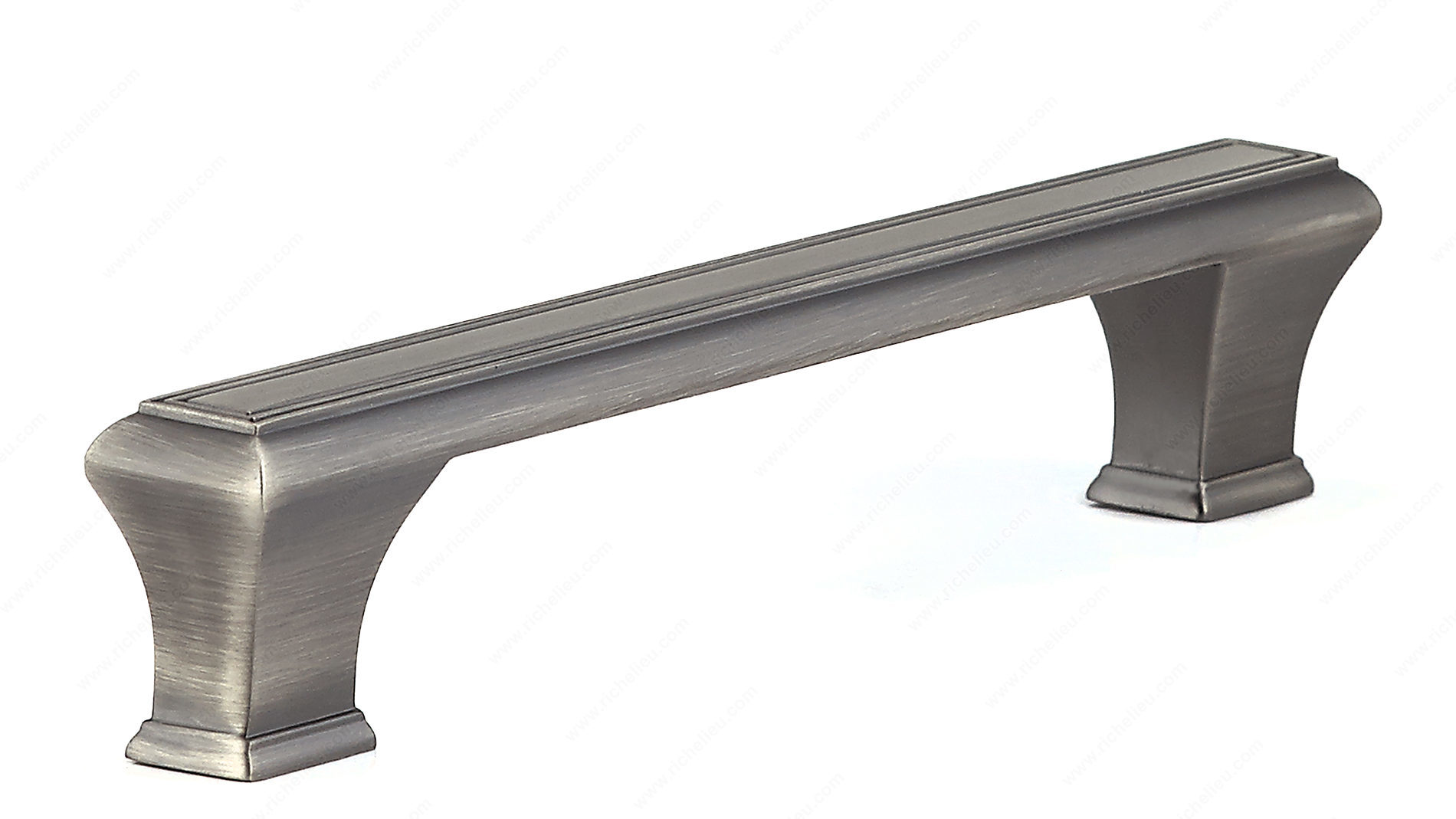 Richelieu BP775160143 Traditional Metal Pull - 7759 offers a timeless appeal, making it an ideal choice for enhancing kitchen or bathroom cabinets. With its classic rectangular design, this pull features a beautifully beveled edge and tapered feet, effortlessly combining elegance and functionality. Measuring 7 15/32 inches in length with a comfortable projection of 1 5/16 inches, it fits seamlessly into any décor. The center-to-center spacing of 6 5/16 inches ensures compatibility with standard cabinet configurations. Crafted from durable Zamak material, the pull is available in an Antique Nickel finish, which not only provides a sophisticated look but also ensures longevity. The enticing gray and chrome color scheme complements various design themes, making it a versatile addition to any home. This pull is part of the complete collection, including models 7753 and 7759, allowing for a cohesive design throughout your space. Installation is straightforward, with 8/32 inch screws included for your convenience. Elevate your cabinetry with the Richelieu BP775160143 Traditional Metal Pull, where classic design meets modern-day durability and style, ensuring your spaces are both functional and aesthetically pleasing.