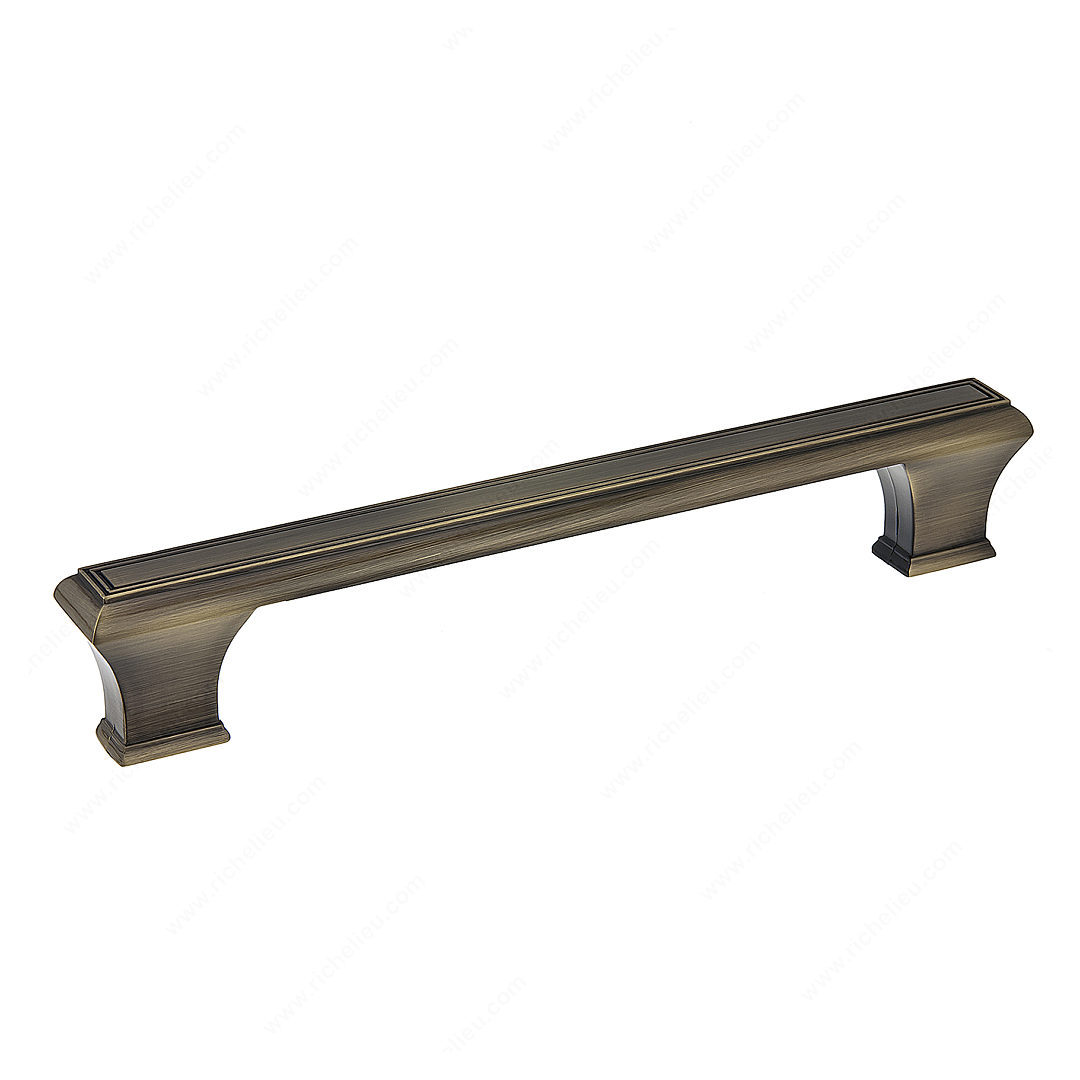 Richelieu BP775160AE Traditional Metal Pull - 7759 offers a classic touch for kitchen and bathroom cabinetry. Crafted from durable Zamak, this pull features a refined design with a beveled edge and tapered feet, making it an elegant addition to any room's decor. Its antique English finish enhances the sophisticated appeal, while the vibrant yellow and brass color combination adds a stylish flair. With an overall length of 7 15/32 inches and a projection of 1 5/16 inches, this pull is designed for comfortable grip and functionality. The 6 5/16-inch center-to-center measurement ensures compatibility with a variety of cabinet styles. This traditional pull is part of the complete collection, which includes models 7753 and 7759, allowing for a cohesive design throughout your space. Installation is straightforward, as an 8/32 inch screw is included, making it easy to update your cabinets with this stunning hardware. The Richelieu BP775160AE is not just a pull; it's a statement piece that enhances the visual aesthetics of your home. Perfect for those who appreciate timeless design and quality craftsmanship, it seamlessly blends functionality with elegance, making it a must-have for any renovation or new build project.