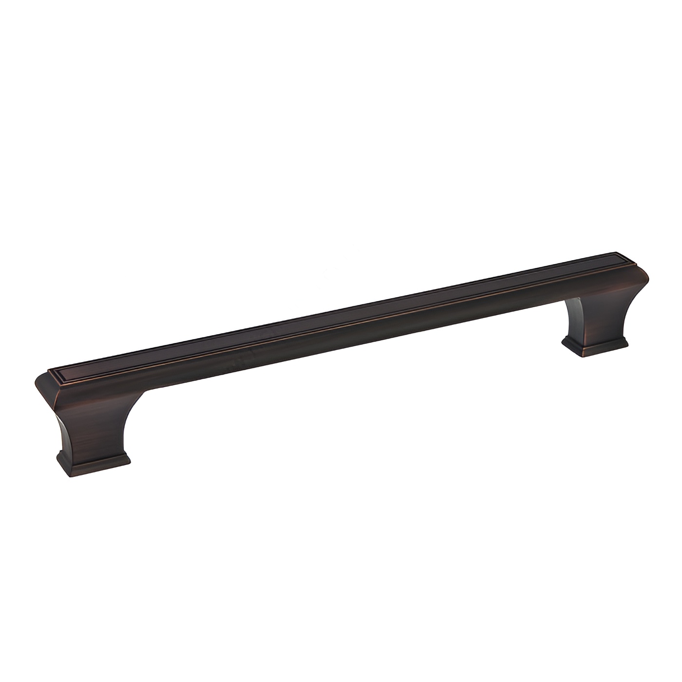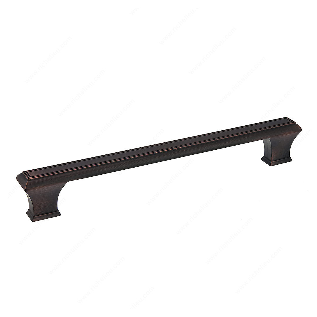 Richelieu BP775192BORB Traditional Metal Pull - 7759 offers a timeless elegance that enhances both kitchen and bathroom cabinetry. This classic rectangular pull features a distinctive beveled edge and stylish tapered feet, making it a sophisticated addition to any space. Crafted from durable zamak, this pull boasts a brushed oil-rubbed bronze finish (BORB) that adds warmth and character, complementing a variety of design themes. With an overall length of 8 3/4 inches and a center-to-center measurement of 7 9/16 inches, this pull is designed for comfortable grip and ease of use. Its modest projection of 1 5/16 inches ensures a streamlined look while providing ample space for fingers. The width of 25/32 inches enhances its sleek profile, making it suitable for both traditional and contemporary settings. The BP775192BORB is part of the complete 7753/7759 collection, allowing for cohesive styling throughout your cabinetry. Each pull comes with 8/32 inch screws included for straightforward installation. Whether you're renovating your kitchen or updating bathroom fixtures, this pull provides a refined touch that balances functionality with classic design. Elevate your interior with Richelieu's Traditional Metal Pull - a perfect choice for discerning homeowners and professionals alike.