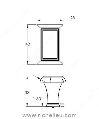Richelieu BP77533143 Traditional Metal Knob - 7753 features a classic rectangular design that embodies elegance and functionality. Crafted with a sophisticated Antique Nickel finish, this knob complements both kitchen and bathroom cabinetry, enhancing the overall aesthetic with its refined beveled edges and tapered base. Measuring 1 11/16 inches in length, 1 3/32 inches in width, and projecting 1 5/16 inches, it strikes the perfect balance between style and practicality. Made from durable Zamak material, the knob ensures long-lasting performance while maintaining a timeless appearance. The traditional style makes it an ideal choice for various interior design themes, allowing homeowners and builders to effortlessly elevate their spaces. Each knob comes with an 8/32 inch screw included, simplifying the installation process. Available in a stylish gray and chrome color scheme, the BP77533143 is part of the complete collection, which includes models 7753 and 7759, offering a cohesive look for multiple cabinetry pieces. With the option to ship via UPS, you can conveniently order this exquisite knob and enjoy a touch of classic charm in your home. Upgrade your cabinetry with Richelieu's Traditional Metal Knob and experience the perfect fusion of elegance and durability.
