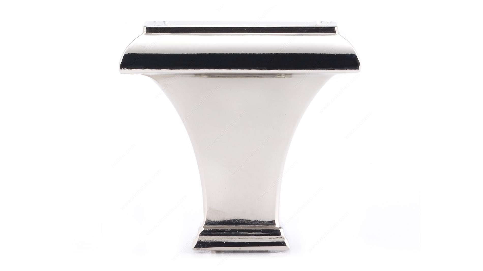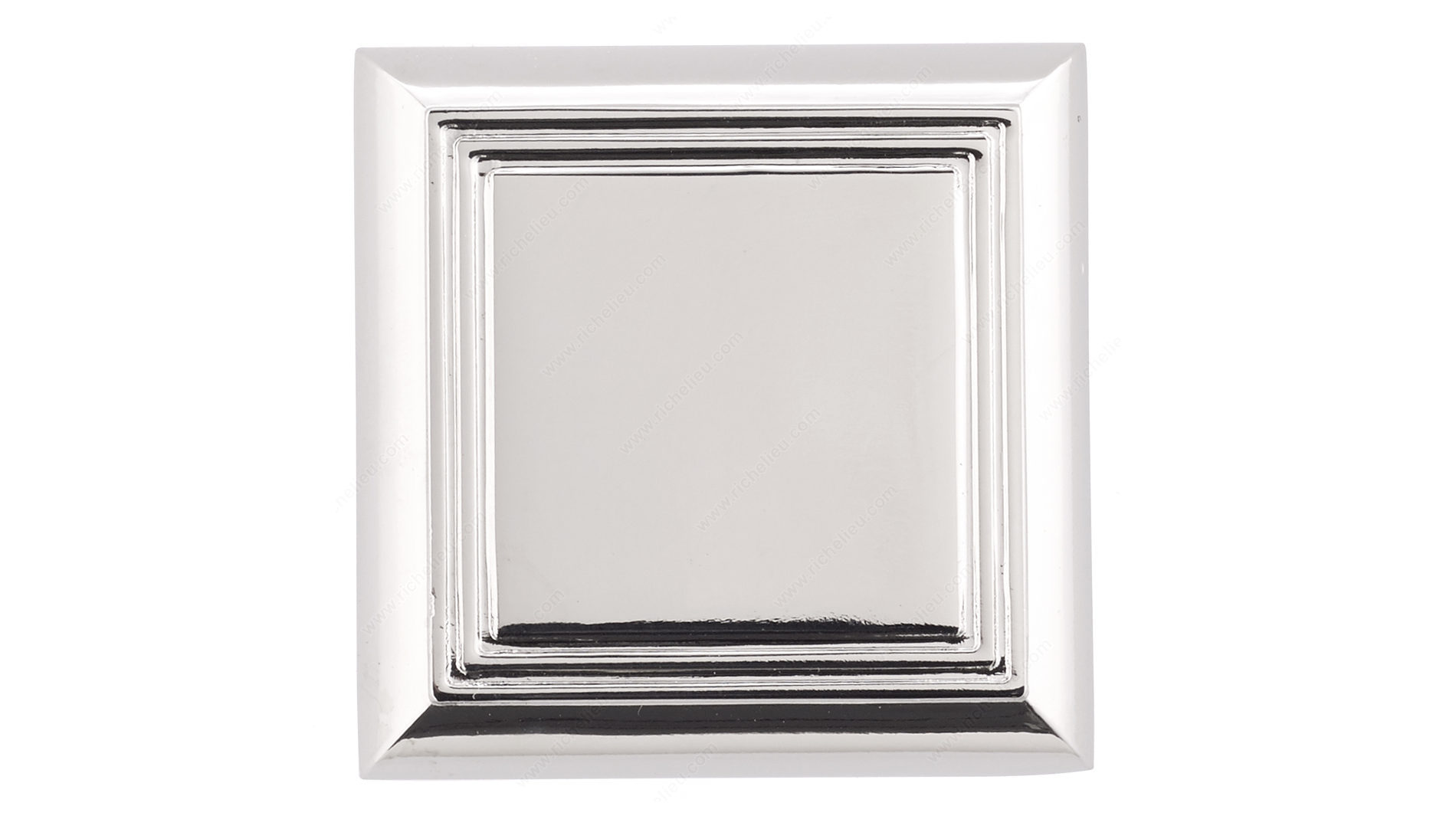 Richelieu BP77535180 Traditional Metal Knob - 7753 is a classic rectangular knob that effortlessly combines elegance and functionality. With its refined frame featuring beveled edges on a tapered base, this knob is designed to elevate the aesthetic of your kitchen or bathroom. Crafted from durable zamak, it ensures long-lasting performance while maintaining a sophisticated appearance. The knob is finished in polished nickel, lending a sleek gray and chrome look that complements a variety of decor styles. Measuring 1 3/8 inches in length and width, and with a projection of 1 5/16 inches, it provides a comfortable grip for easy use. This traditional-style knob is part of the complete collection, which includes models 7753 and 7759, allowing for cohesive design throughout your space. Installation is a breeze with the included 8/32 inch screw, making it a practical choice for both professionals and DIY enthusiasts. The Richelieu BP77535180 knob is designed to ship via UPS, ensuring a convenient and timely delivery. Enhance your cabinetry with this beautiful knob that reflects quality craftsmanship and timeless design, making it a perfect addition to any home.