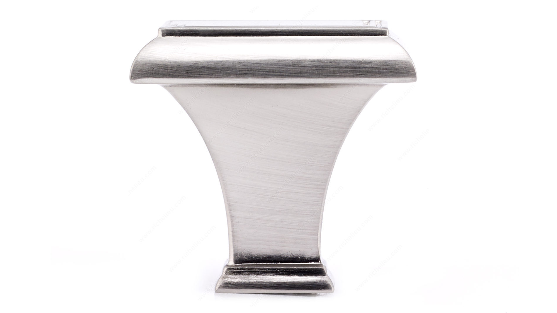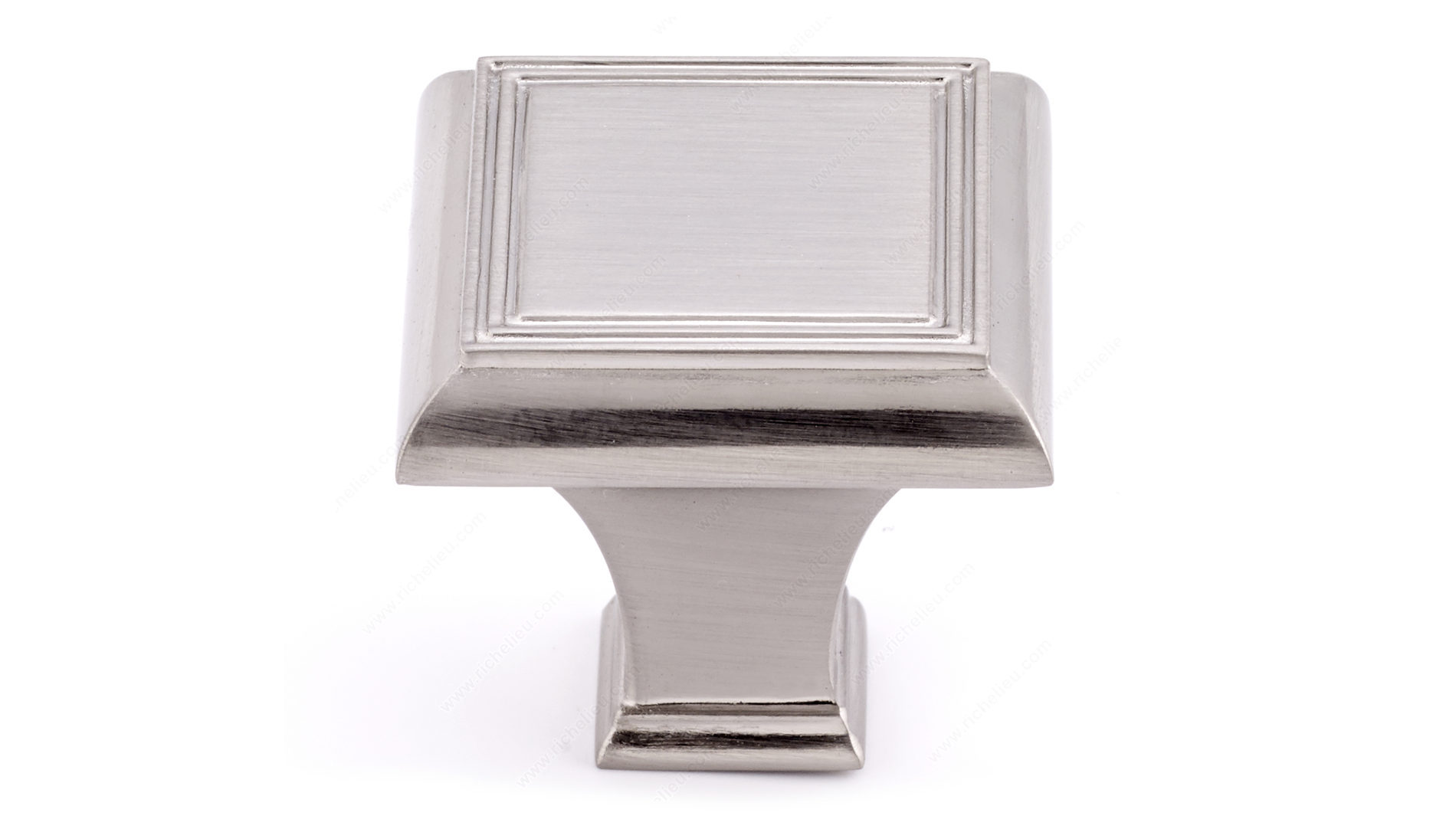 Richelieu BP77535195 Traditional Metal Knob - 7753 offers a timeless design that elevates any kitchen or bathroom decor. Crafted from durable zamak, this classic rectangular knob features an elegant frame with beveled edges, set atop a tapered base. Its understated sophistication makes it a versatile choice for both traditional and contemporary spaces. The knob is finished in a stylish brushed nickel, giving it a modern touch while maintaining its classic appeal. With dimensions of 1 3/8 inches in length and width, and a projection of 1 5/16 inches, it is designed to provide a comfortable grip while remaining unobtrusive. The color combination of gray and chrome enhances its aesthetic, making it a beautiful addition to cabinetry or furniture. Installation is straightforward, as the knob comes with an included 8/32 inch screw, ensuring you have everything you need to complete your project. Part of the complete collection alongside models 7753 and 7759, this knob can seamlessly coordinate with other pieces in the series. Whether you're renovating a home or designing a new space, the Richelieu BP77535195 Traditional Metal Knob is a refined choice that combines functionality with style, making it a must-have for discerning homeowners and building professionals alike.