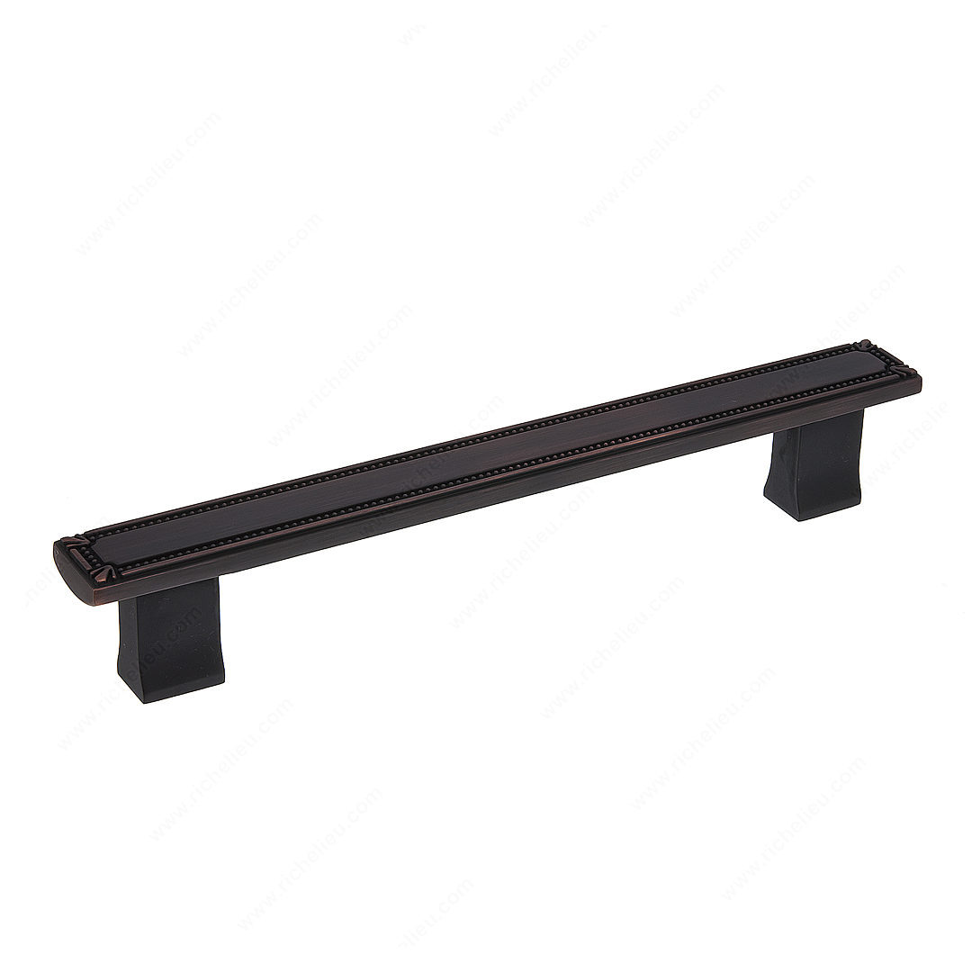Richelieu BP780160BORB Traditional Metal Pull - 7809 combines timeless elegance with practical functionality. This classic metal pull features a squared-tube handle with rounded corners, enhancing both comfort and style. The square flanges at each end add a refined touch, making it a perfect addition to any cabinetry or furniture piece. Crafted from durable zamak, this pull is not only sturdy but also designed to withstand daily use. The brushed oil-rubbed bronze finish lends a warm, rich tone, complementing a variety of interior styles-from rustic to contemporary. With an overall length of 7 29/32 inches and a center-to-center measurement of 6 5/16 inches, it is ideally suited for larger drawers or cabinets. The BP780160BORB pull projects 1 5/16 inches, providing a comfortable grip while maintaining a sleek profile. Each pull comes with 8/32-inch screws for easy installation, ensuring a secure fit. This model is part of the comprehensive 7803/7809 collection, allowing for cohesive design throughout your space. Whether you are a building professional or a discerning homeowner, this traditional pull adds a touch of sophistication to your projects, blending beauty with functionality effortlessly.