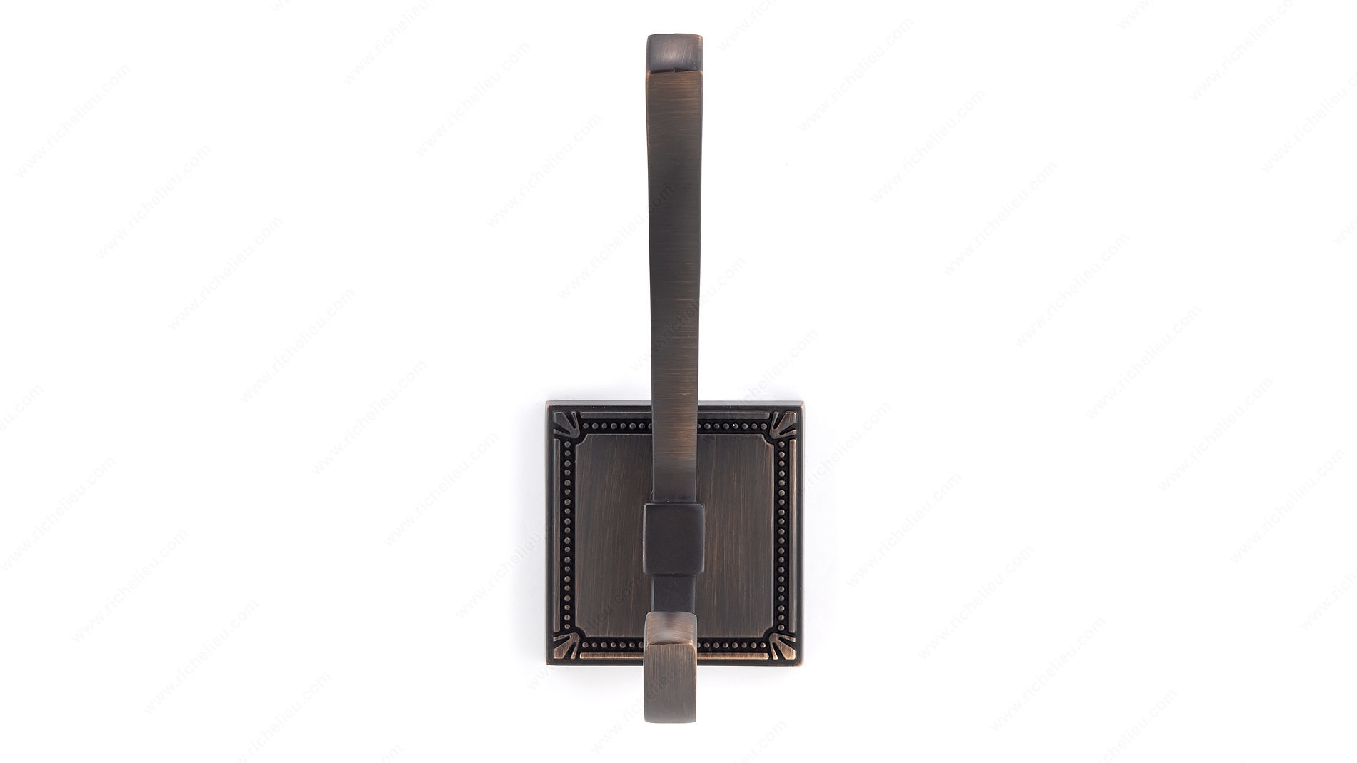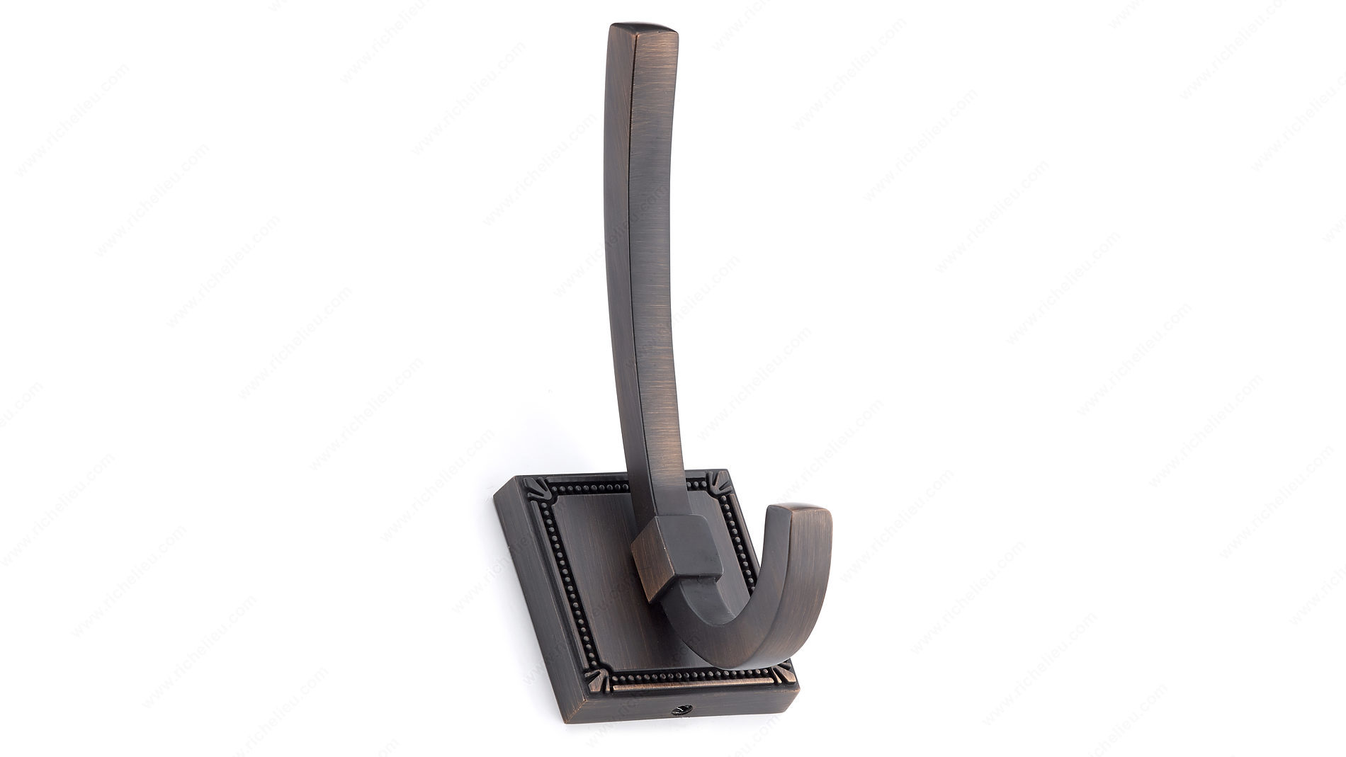 Richelieu BP7801BORB Transitional Metal Hook - 7801 showcases a blend of elegance and functionality, making it an ideal addition to any modern space. With its detailed square base and smooth lines, this double hook adds a sophisticated touch to bedrooms, hallways, or entryways. The brushed oil-rubbed bronze finish, featuring a rich brown and bronze color palette, enhances its transitional style, ensuring it complements a variety of decors. Measuring 4 27/32 inches in height and 1 7/8 inches in width, this hook provides ample space for hanging coats, bags, or accessories. Its sturdy metal construction supports a load capacity of up to 22 pounds, ensuring reliability for everyday use. The overall projection of 2 7/16 inches allows for efficient use of wall space while maintaining a sleek profile. Included screws make installation a breeze, letting you quickly elevate your living area with this stylish yet practical hardware. Whether you're looking to organize your belongings or simply add an aesthetic focal point, the Richelieu BP7801BORB Transitional Metal Hook delivers both style and substance, making it a must-have for discerning homeowners and builders alike.