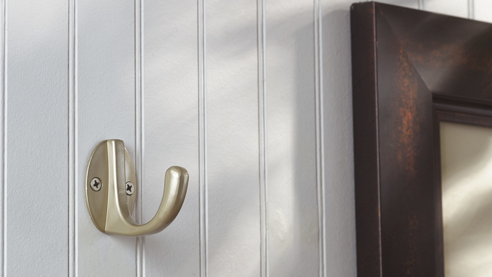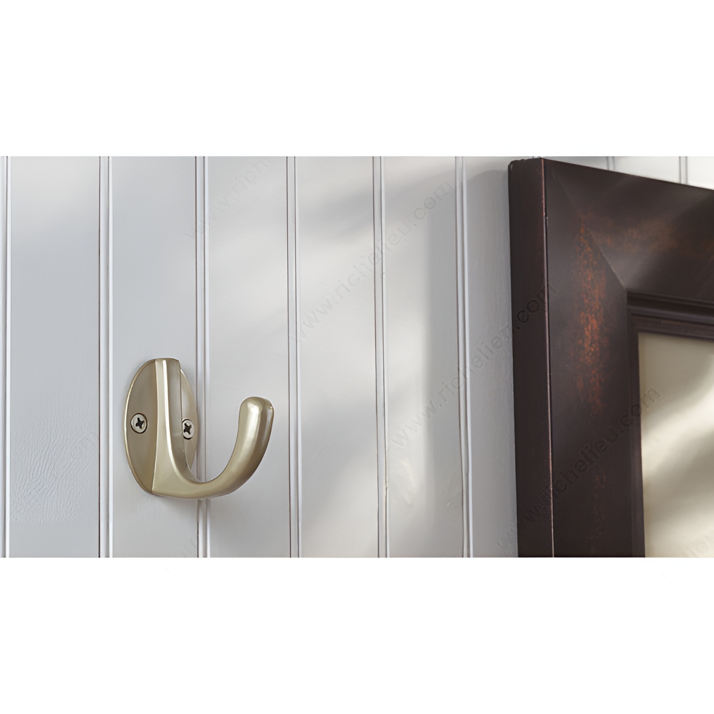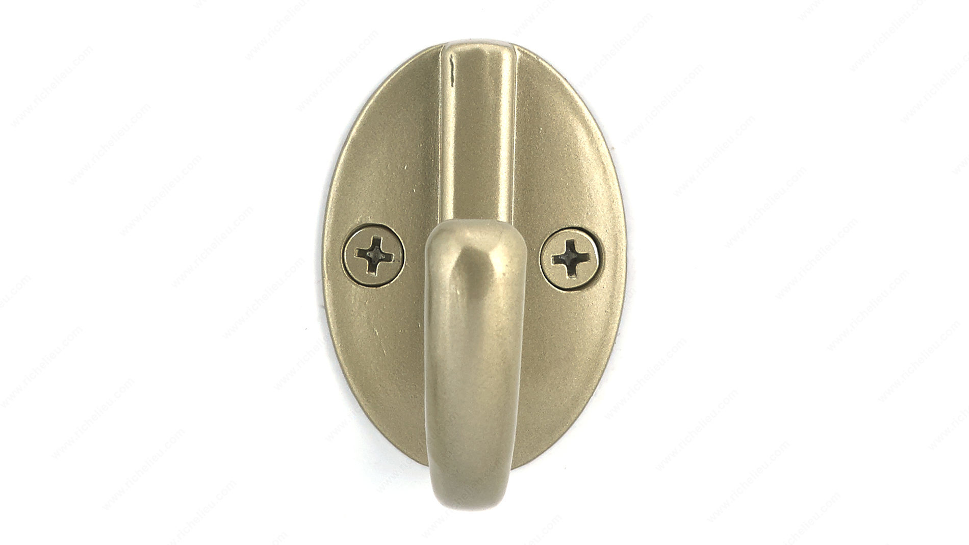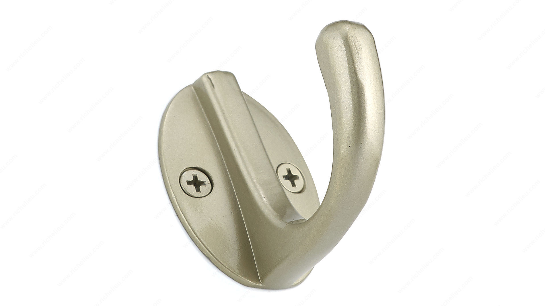 Richelieu BP78022184 2-1/2 in Single Utility Hook - 79 offers a sleek and functional solution for organizing your space with understated elegance. Designed with a simple hook style and an oval base, this utility hook seamlessly integrates into closets, storage areas, or any room that requires a touch of order. The hook is finished in a sophisticated satin nickel, paired with a modern gray and chrome color palette, ensuring it complements a variety of interior aesthetics. With dimensions of 2 5/32 inches in height, 1 1/2 inches in width, and a projection of 2 1/2 inches, it holds a robust load capacity of up to 11 lbs, making it ideal for hanging jackets, bags, or other essentials. Installation is straightforward, as screws are included, allowing you to set it up quickly and effortlessly. Additionally, the hook features a center-to-center measurement of 15/16 inches, making it suitable for various mounting scenarios. Whether enhancing your home or optimizing a workspace, the Richelieu BP78022184 Utility Hook stands out as a practical yet stylish choice for any organizational needs.