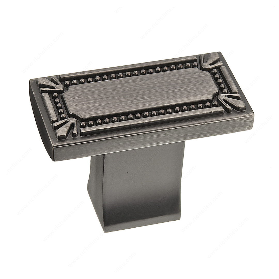 Richelieu BP78033143 Traditional Metal Knob - 7803 offers a classic touch to your kitchen or bathroom with its intricately detailed rectangular design. Expertly crafted from durable zamak, this knob ensures lasting quality and functionality. Its antique nickel finish not only enhances its visual appeal but also complements a variety of decors, making it a versatile choice for any remodel or update. Measuring 1 11/16 inches in length, 7/8 inch in width, and projecting 1 5/16 inches from the surface, this knob provides a comfortable grip while maintaining a streamlined profile. The elegant gray and chrome color scheme adds a subtle sophistication, allowing it to blend seamlessly with other elements in your space. Included with the knob is an 8/32 inch screw, making installation a breeze. This model is part of the complete 7803/7809 collection, offering additional matching pieces for a cohesive look throughout your cabinetry. Designed with traditional aesthetics in mind, the Richelieu BP78033143 is perfect for homeowners and professionals seeking to enhance their interior environments with timeless hardware solutions. Upgrade your cabinetry today with this exquisite knob, and enjoy the perfect marriage of style and practicality.