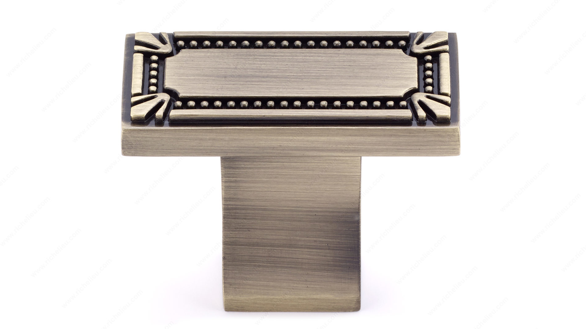 Richelieu BP78033AE Traditional Metal Knob - 7803 is an exquisite choice for enhancing the aesthetic appeal of your kitchen or bathroom. With its classic rectangular design and intricate detailing, this knob serves as both a functional element and a stylish accent. Crafted from durable zamak, it promises longevity while adding a touch of sophistication. The knob features a rich Antique English finish, showcasing a beautiful blend of yellow and brass tones that can seamlessly complement various decor styles. Measuring 1 11/16 inches in length, 7/8 inches in width, and projecting 1 5/16 inches, it offers a comfortable grip and a substantial feel without overwhelming your cabinetry. Designed for traditional settings, the BP78033AE knob is part of the complete 7803/7809 collection, providing numerous options for cohesive styling throughout your space. Each knob comes with an included 8/32 inch screw, ensuring easy installation. Whether you're updating your cabinetry or embarking on a full renovation, Richelieu’s Traditional Metal Knob is the perfect finishing touch that combines elegance and practicality. Opt for this timeless piece to elevate your interiors and create a lasting impression.