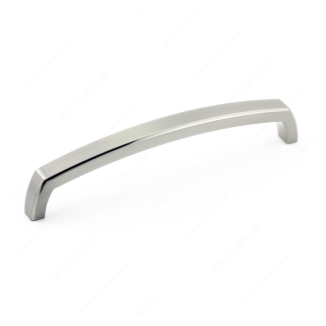 Richelieu BP785160195 Transitional Metal Pull - 785 boasts a sophisticated yet sturdy design, perfect for enhancing the look of kitchen and bathroom cabinetry. This transitional arched pull features rounded edges and ends that provide a comfortable grip while adding a contemporary touch to your space. Crafted from durable Zamak material, it combines strength with an appealing aesthetic. With an overall length of 6 5/8 inches and a center-to-center measurement of 6 5/16 inches, this pull is designed to fit seamlessly into a variety of cabinet styles. The brushed nickel finish, identified by the finish number 195, showcases a sleek gray and chrome color palette that easily complements any décor. The pull projects 1 3/8 inches outward, making it not only visually appealing but also practical for everyday use. Included with the product are 8/32 inch screws for straightforward installation, ensuring that your updates are hassle-free. Part of the comprehensive 785/7853 collection, the Richelieu BP785160195 is an ideal choice for those looking to combine functionality with modern elegance in their cabinetry hardware. Elevate your space with this solid and stylish pull, designed to last while making a statement.