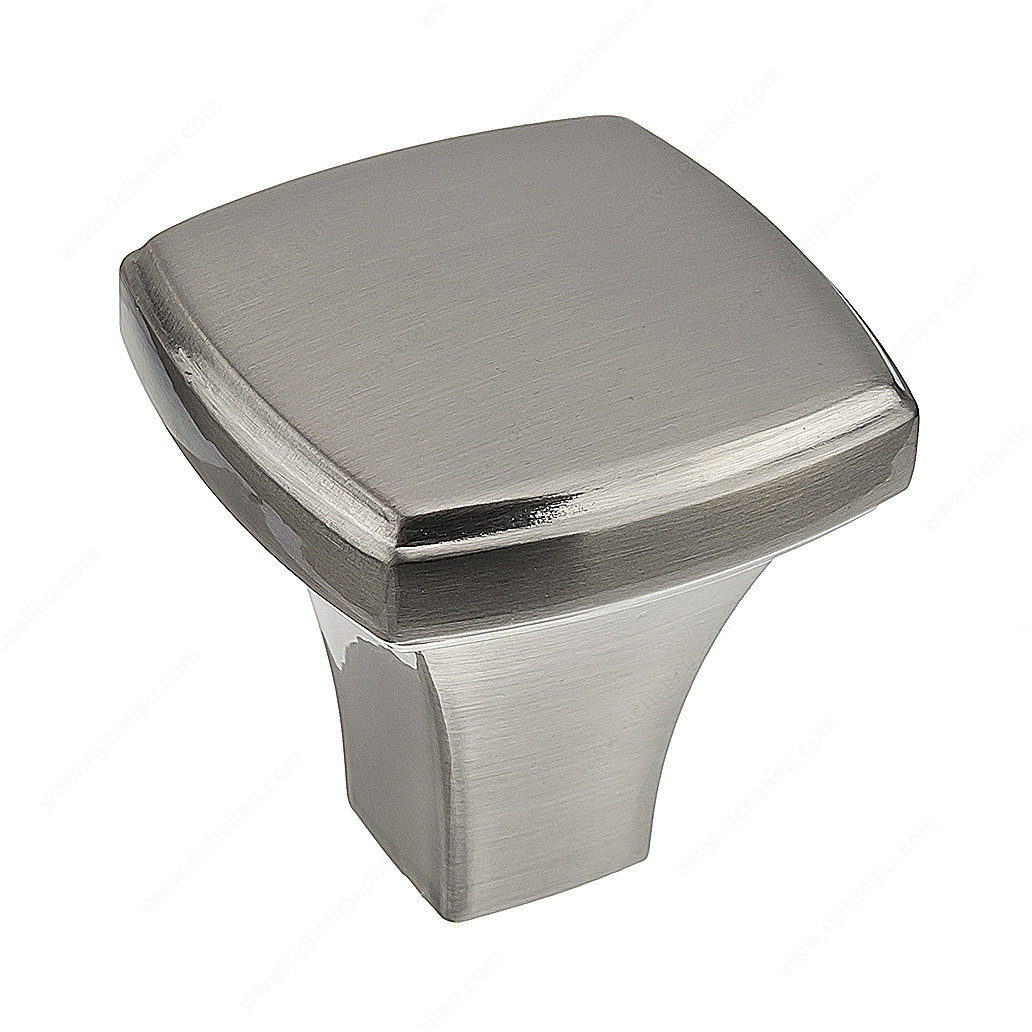 Richelieu BP78535195 Transitional Metal Knob - 7853 is designed to elevate the style of your kitchen cabinets with its sleek and modern aesthetic. This rectangular knob features elegantly beveled edges and a tapered base, making it a perfect choice for those who appreciate transitional design. Crafted from durable zamak, it ensures long-lasting performance while maintaining its sophisticated appearance. Measuring 1 1/4 inches in both length and width, with a projection of 1 5/16 inches, this knob fits comfortably in your hand, offering both functionality and style. The brushed nickel finish (Finish Number: 195) adds a touch of elegance and complements a variety of cabinet styles, while the gray and chrome color options allow for further personalization within your space. Included with the knob is an 8/32 inch screw for easy installation, making it a practical choice for both professionals and DIY enthusiasts. Richelieu’s commitment to quality ensures that this knob not only enhances the visual appeal of your cabinetry but also stands up to daily use. Available through UPS shipping, the BP78535195 knob is an excellent addition to any kitchen remodel or update, seamlessly blending form and function.