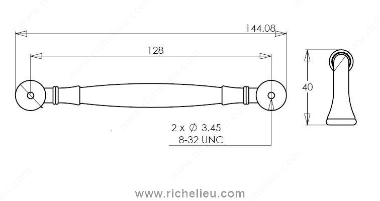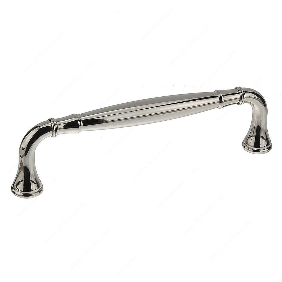 Richelieu BP790128180 Traditional Metal Pull - 790 showcases a timeless design that effortlessly elevates the aesthetic of any kitchen or bathroom. With its elegantly arched handle and flared ends, this pull combines functionality with classic charm, making it an ideal choice for both modern and traditional spaces. Measuring 5 21/32 inches in length and featuring a center-to-center distance of 5 1/32 inches, the pull is crafted from durable zamak material, ensuring long-lasting use. Its polished nickel finish adds a touch of sophistication, while the striking gray and chrome color scheme complements various decor styles. With a projection of 1 9/16 inches and a width of 5/8 inches, it provides a comfortable grip and enhances usability. The Richelieu BP790128180 is part of the Classic collection, allowing for seamless coordination with other pieces in the series. Each pull comes with included 8/32 inch screws for easy installation, ensuring a hassle-free upgrade to your cabinetry. This traditional pull not only serves a practical purpose but also adds a refined touch to your home’s interior. Make a statement in your living space with this exquisite hardware piece from Richelieu.