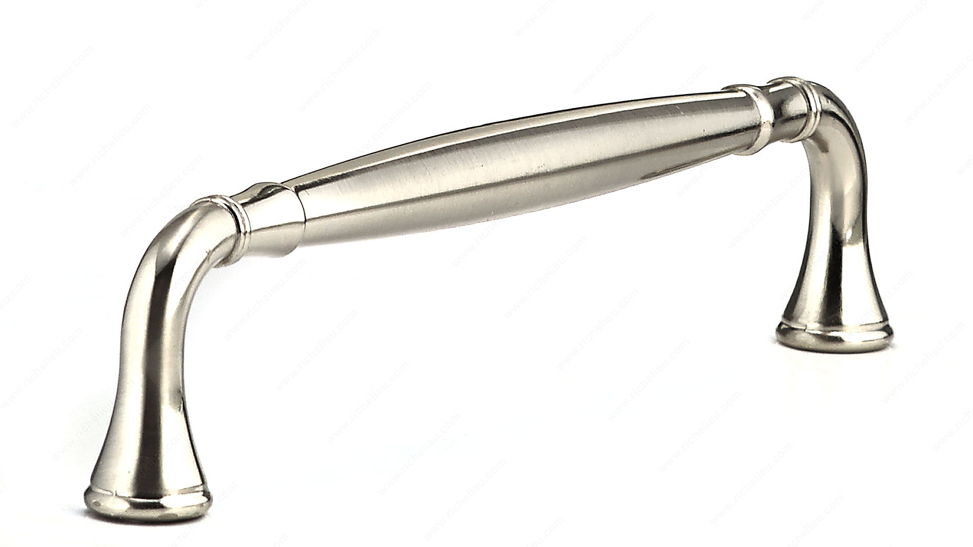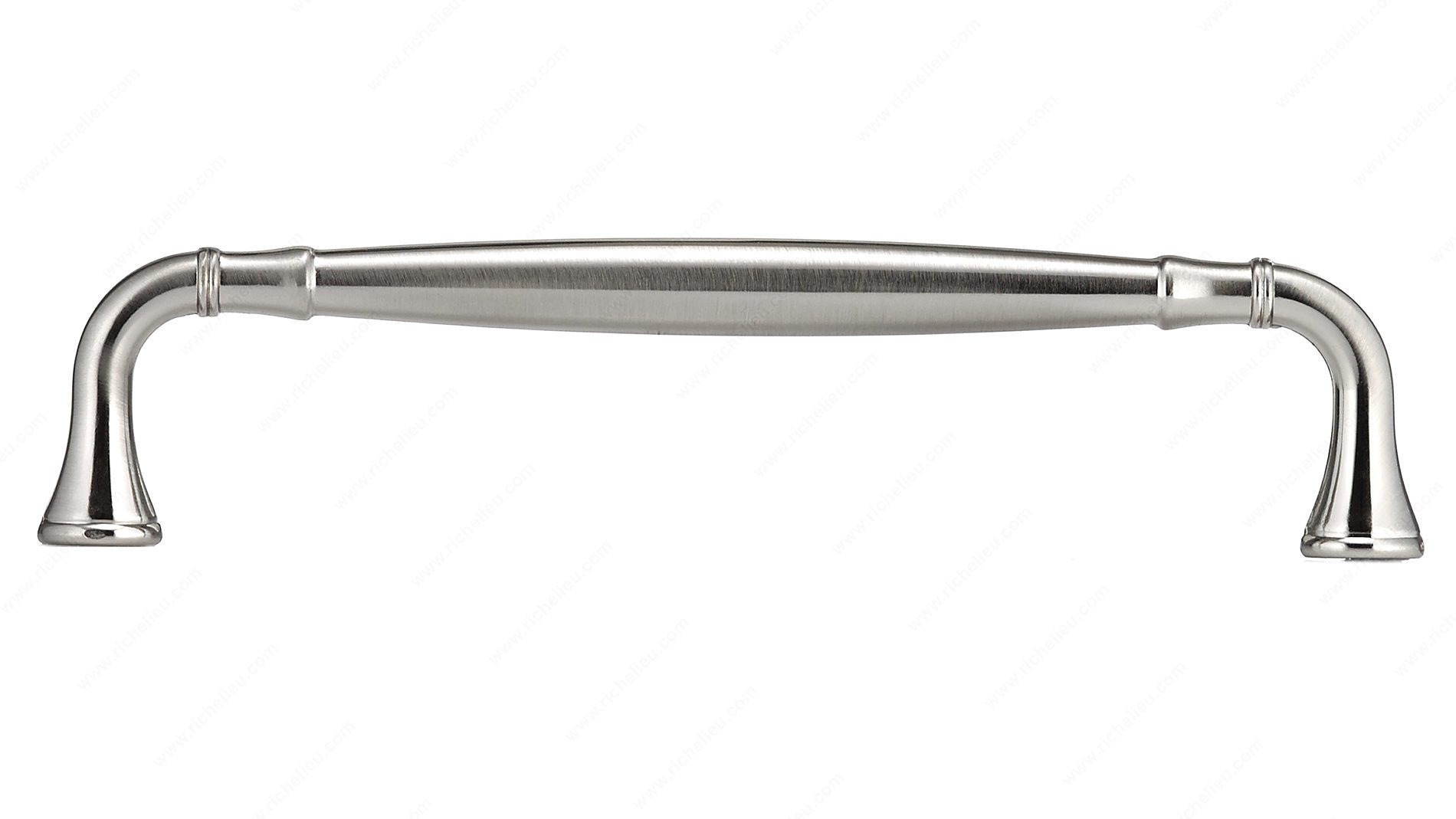 Richelieu BP790160195 Traditional Metal Pull - 790 showcases an elegant arched design complemented by flared ends, making it a timeless addition to any kitchen or bathroom décor. Crafted from durable zamak, this pull combines strength with a sophisticated aesthetic, ensuring it not only looks great but also stands the test of time. With an overall length of 6 15/16 inches and a center-to-center measurement of 6 5/16 inches, this pull is designed to fit seamlessly into your existing cabinetry. The brushed nickel finish enhances its classic appeal while providing a modern touch, perfect for both traditional and contemporary settings. Available in a striking gray and chrome color, it adds a subtle elegance that can elevate any room. Installation is straightforward, as the pull comes with 8/32 inch screws included, facilitating a quick and easy upgrade to your cabinets or drawers. The overall projection of 1 9/16 inches offers a comfortable grip, making it functional as well as stylish. Richelieu’s BP790160195 is part of the extensive 790 collection, ensuring you can create a cohesive look throughout your space. Enhance your home’s functionality and style with this classic metal pull.