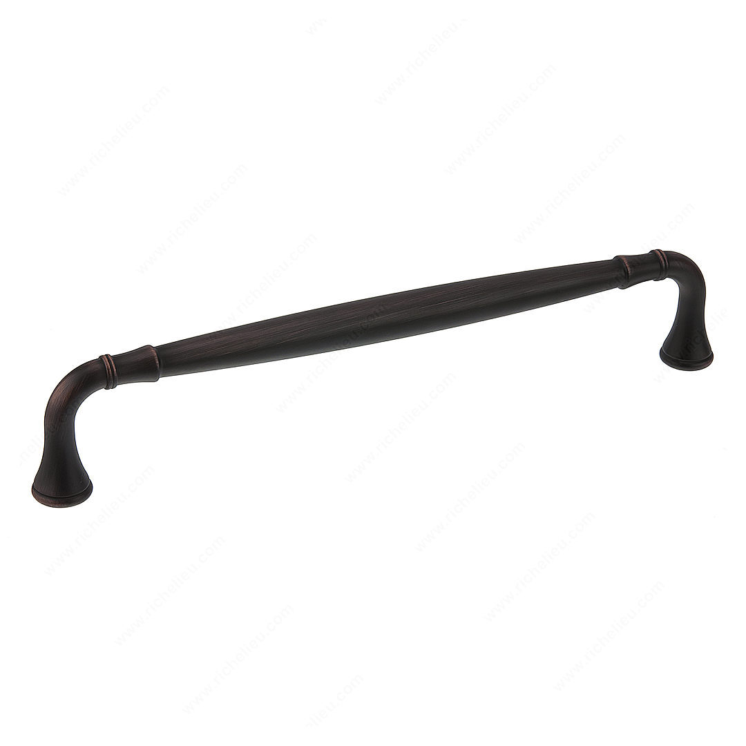 Richelieu BP790192BORB Traditional Metal Pull - 790 is a stunning addition to any kitchen or bathroom, showcasing an elegant arched handle complemented by flared ends. This pull epitomizes classic design, seamlessly enhancing the decor of your space while providing a functional touch. Crafted from durable zamak, this metal pull features a brushed oil-rubbed bronze finish that exudes warmth and sophistication. With an overall length of 8 3/16 inches and a center-to-center measurement of 7 9/16 inches, it is perfectly sized for a variety of cabinetry. The overall projection of 1 9/16 inches ensures comfortable grip and ease of use. Whether you are updating existing hardware or embarking on a new project, the BP790192BORB pull is part of the complete 790 collection, offering versatility for various design themes. The included 8/32 inch screws make installation straightforward, allowing for quick upgrades without hassle. With its rich brown and bronze color scheme, this traditional pull beautifully marries style and functionality, making it a timeless choice for discerning homeowners and building professionals alike. Choose the Richelieu BP790192BORB for a refined finishing touch that elevates your cabinetry to new heights.