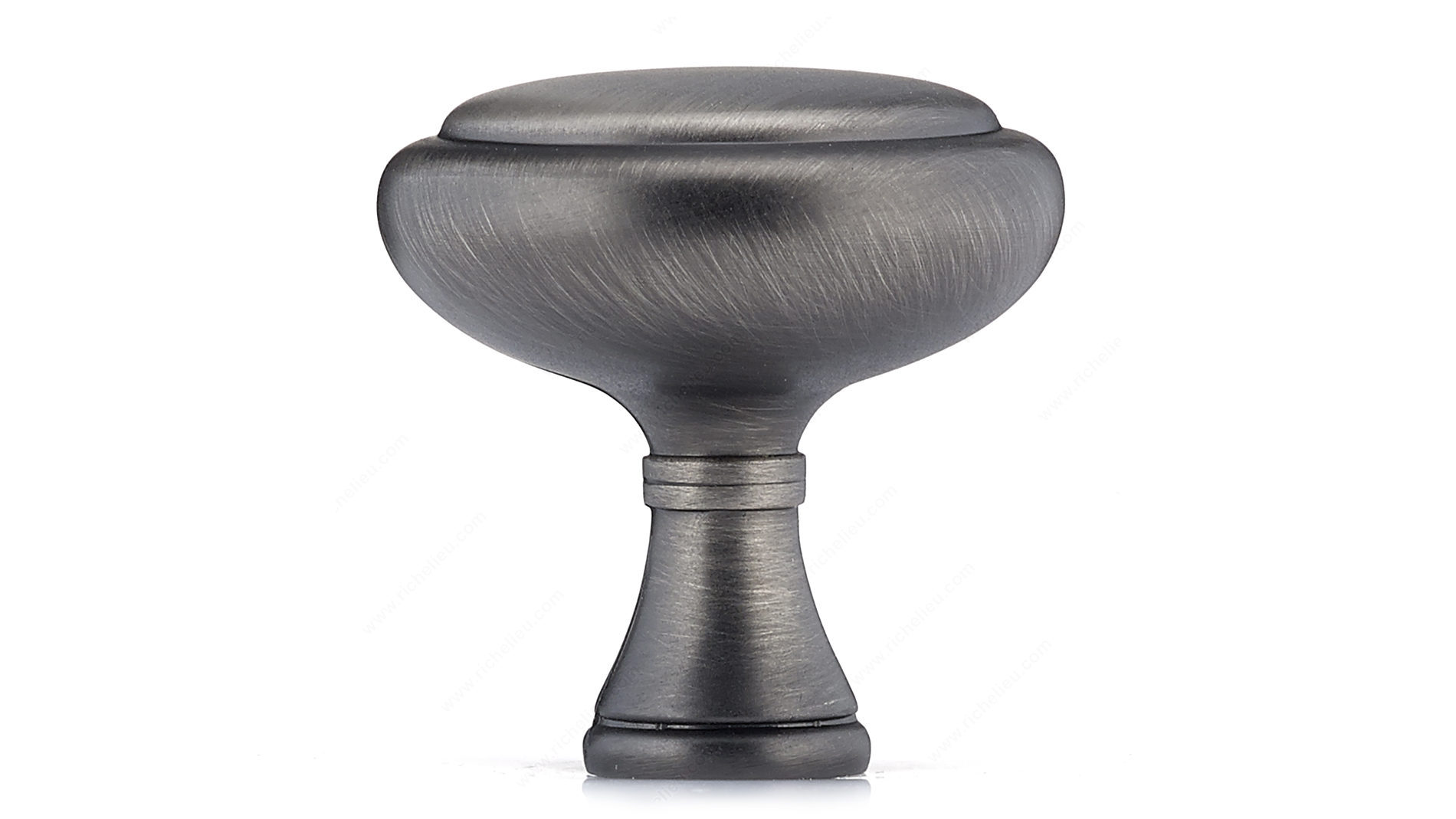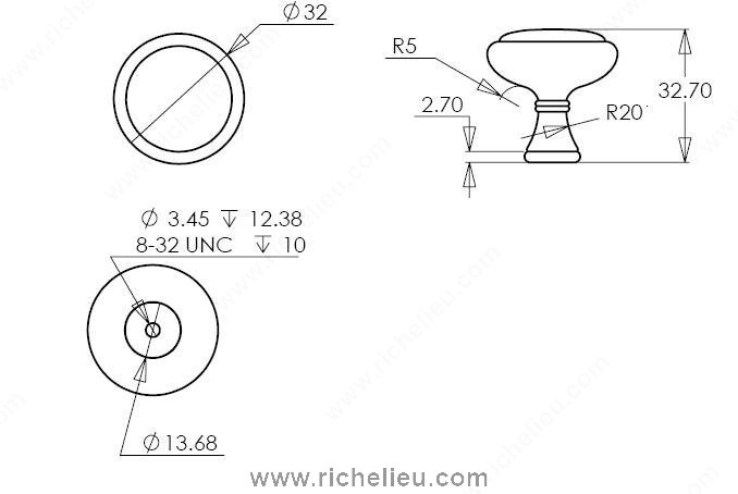 Richelieu BP79032143 Traditional Metal Knob - 7903 offers a classic mushroom design that enhances both kitchen and bathroom furniture with its elegant style. Crafted from durable Zamak, this knob features a refined antique nickel finish that effortlessly complements a variety of décors, making it a versatile choice for any traditional setting. Measuring 1 1/4 inches in diameter and 1 5/16 inches in height, the knob provides a comfortable grip while maintaining a subtle aesthetic. The base diameter of 9/16 inch ensures a secure fit, while the included 8/32 inch screw simplifies installation. The thoughtful detailing on both the knob and shaft adds a touch of sophistication, elevating the overall appearance of cabinets and drawers. With its stylish gray and chrome coloring, the Richelieu BP79032143 is not just a functional accessory but also a decorative element that can enhance the visual appeal of your interiors. This knob is part of the comprehensive 790 collection, allowing for cohesive design throughout your space. Whether you're upgrading your kitchen or refreshing your bathroom, this traditional metal knob is an ideal choice for homeowners and building professionals alike, delivering both quality and charm.