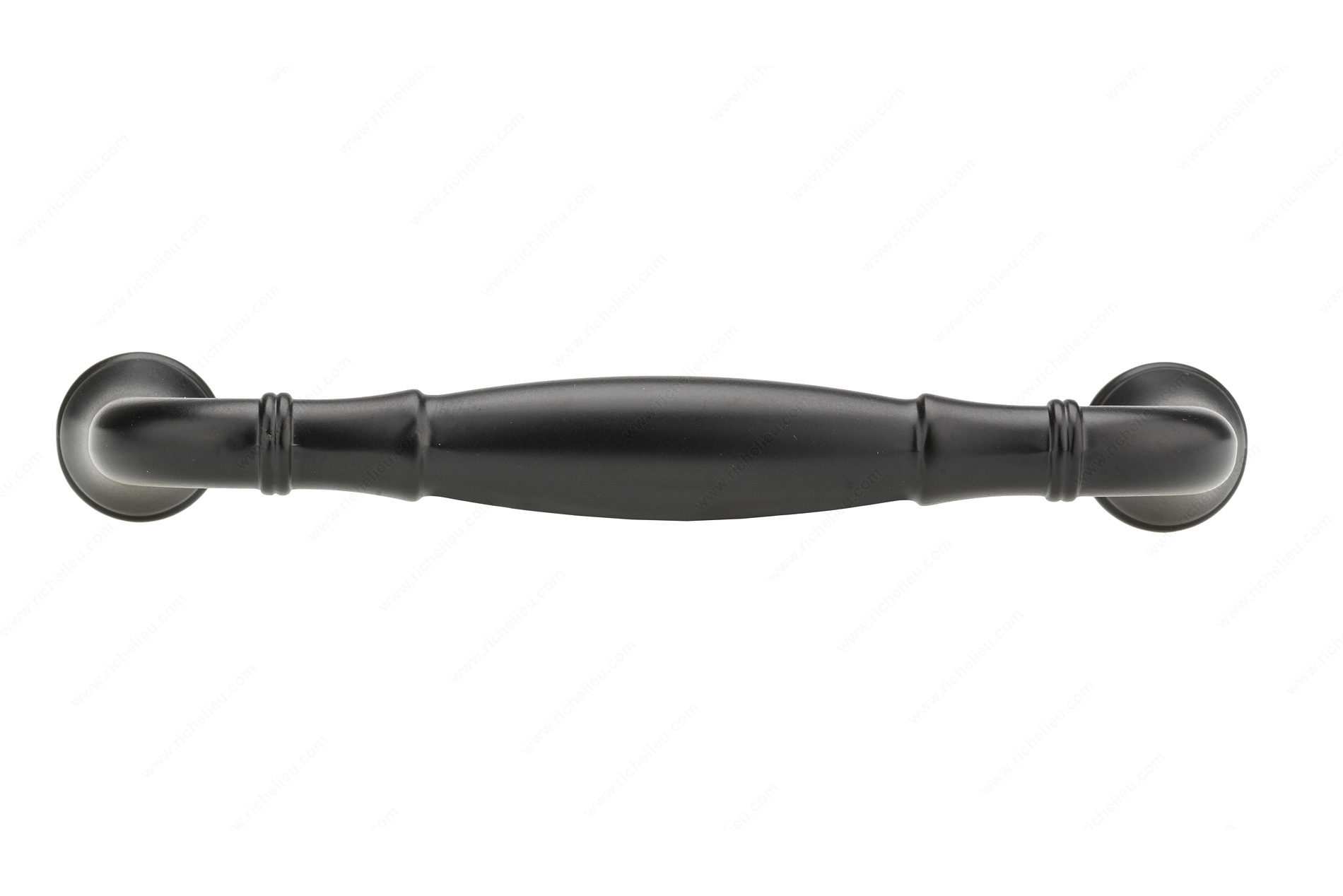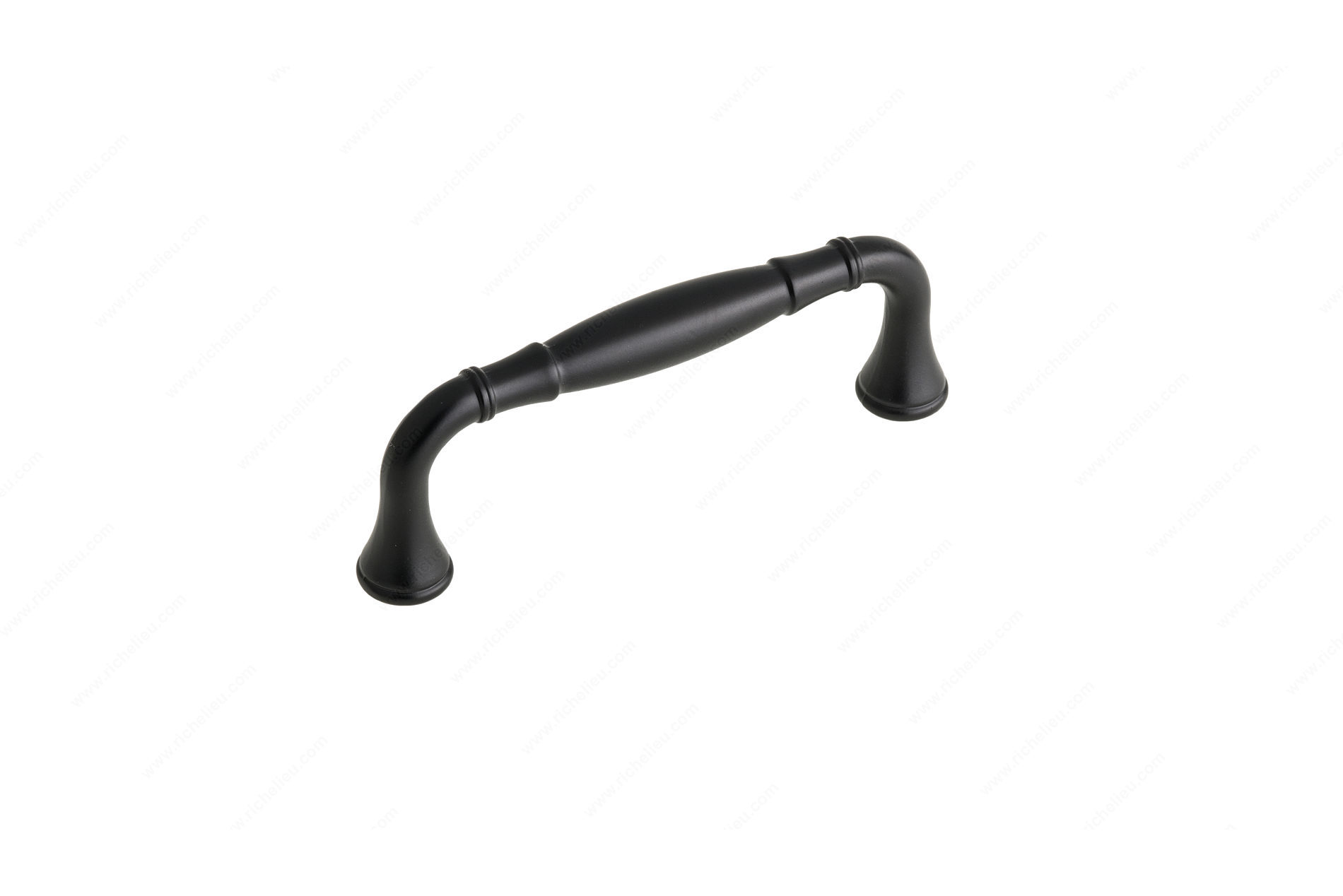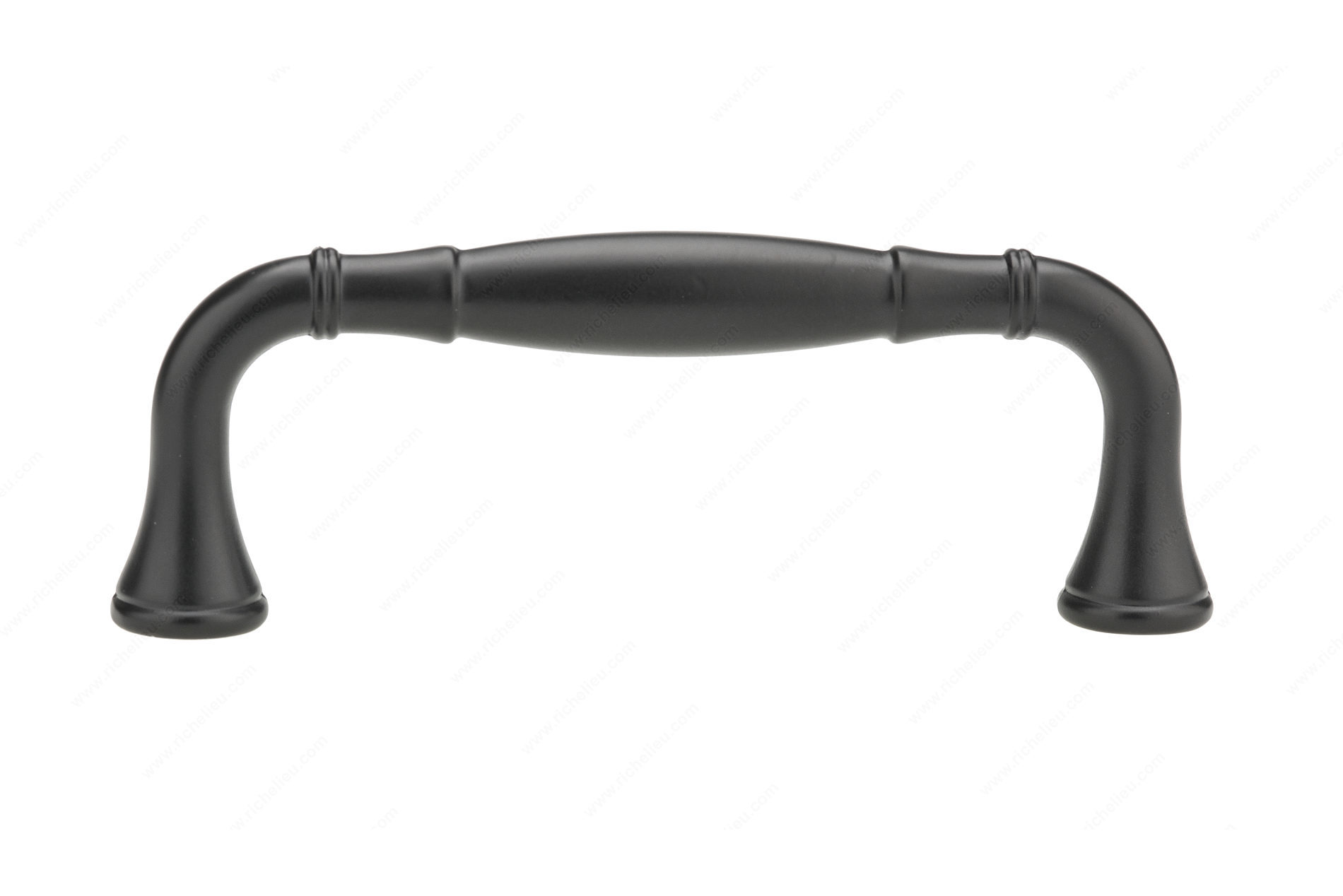Richelieu BP79096900 Traditional Metal Pull - 790 brings timeless elegance to your kitchen or bathroom with its beautifully arched handle and flared ends. This pull is not only a functional hardware piece but also a statement of style that enhances the overall décor of any space. Crafted from durable Zamak, it offers a robust solution that stands the test of time while maintaining a sophisticated look. With a matte black finish, this pull adds a touch of modern simplicity and versatility, allowing it to seamlessly blend with various design themes. The pull features a center-to-center measurement of 3 25/32 inches, ensuring a perfect fit for most cabinetry. Measuring 4 13/32 inches in length, 5/8 inches in width, and with a projection of 1 9/16 inches, it offers a comfortable grip and practical use. Included with the pull are 8/32 in screws, making installation straightforward and hassle-free. This model is part of Richelieu's New Collection, ensuring that you are choosing a product that embodies contemporary trends while retaining a classic appeal. Elevate your cabinetry with the Richelieu BP79096900, where quality and style meet functionality.