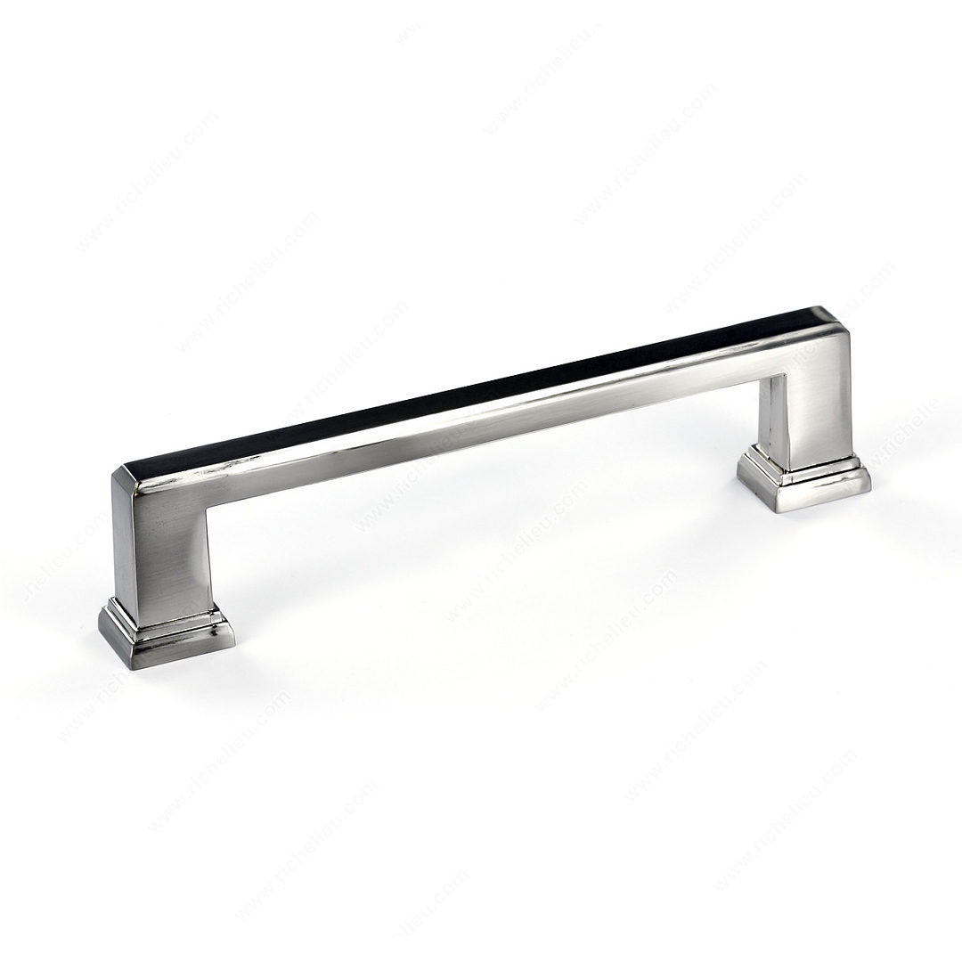 Richelieu BP795128195 Transitional Metal Pull - 795 brings a touch of elegance to your kitchen and bathroom décor. Designed with a simple rectangular shape, this pull features ornamental detailing on the square base, creating a sophisticated aesthetic that complements various styles. Made from durable Zamak, it ensures longevity while maintaining a modern look. With a center-to-center measurement of 5 1/32 inches, this pull is perfect for cabinets and drawers, making it a versatile choice for any space. The brushed nickel finish, combined with a gray and chrome color palette, enhances its appeal and allows for seamless integration with existing fixtures and hardware. The overall dimensions are 5 13/16 inches in length, 21/32 inches in width, and a projection of 1 3/8 inches, providing a comfortable grip and easy functionality. Each pull comes with an 8/32 inch screw included for straightforward installation. Part of the complete 795 collection, the Richelieu BP795128195 Transitional Metal Pull is packaged in a convenient bag, ensuring it arrives ready for your project. Elevate your interiors with this stylish and functional hardware that reflects contemporary design principles.