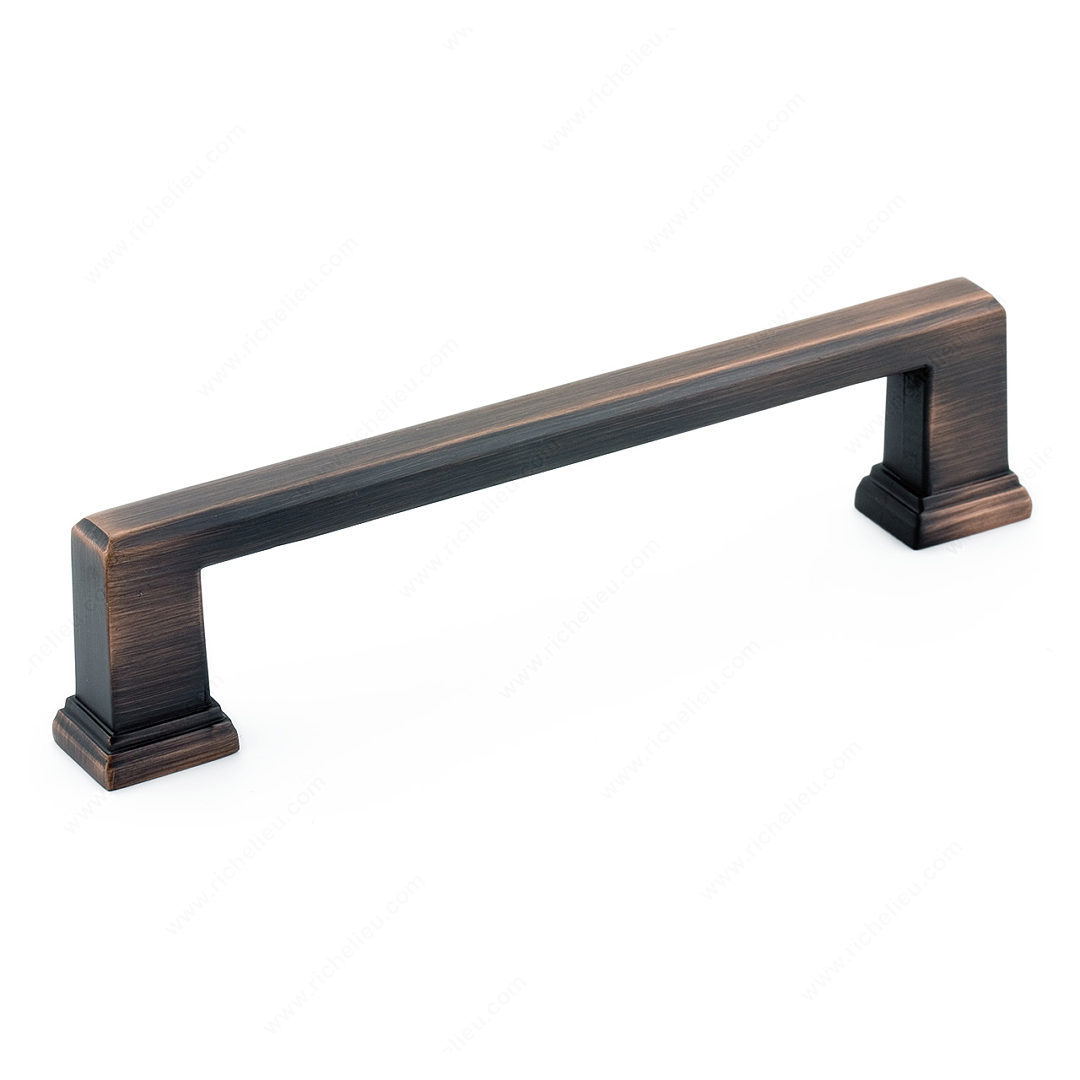 Richelieu BP795128BORB Transitional Metal Pull - 795 is the perfect accent to modernize your kitchen or bathroom décor. With its simple rectangular design, this pull is elevated by ornamental detailing on the square base, creating a stylish yet functional element for your cabinetry. The brushed oil-rubbed bronze finish adds a touch of warmth and sophistication, making it an ideal choice for a range of design styles. Measuring 5 13/16 inches in overall length and offering a 5 1/32 inch center-to-center distance, this pull fits seamlessly into your existing cabinetry. Crafted from durable zamak, it ensures longevity and resilience, while the 1 3/8-inch projection provides a comfortable grip. The pull's width of 21/32 inch maintains a sleek profile that complements both traditional and contemporary designs. Installation is straightforward with included 8/32 inch screws, making it easy for professionals and DIY enthusiasts alike to enhance their spaces. Packaged conveniently in a bag, the Richelieu BP795128BORB pull is ready to ship via UPS. Elevate your projects with this transitional pull, part of the comprehensive 795 collection that offers a cohesive aesthetic throughout your home.
