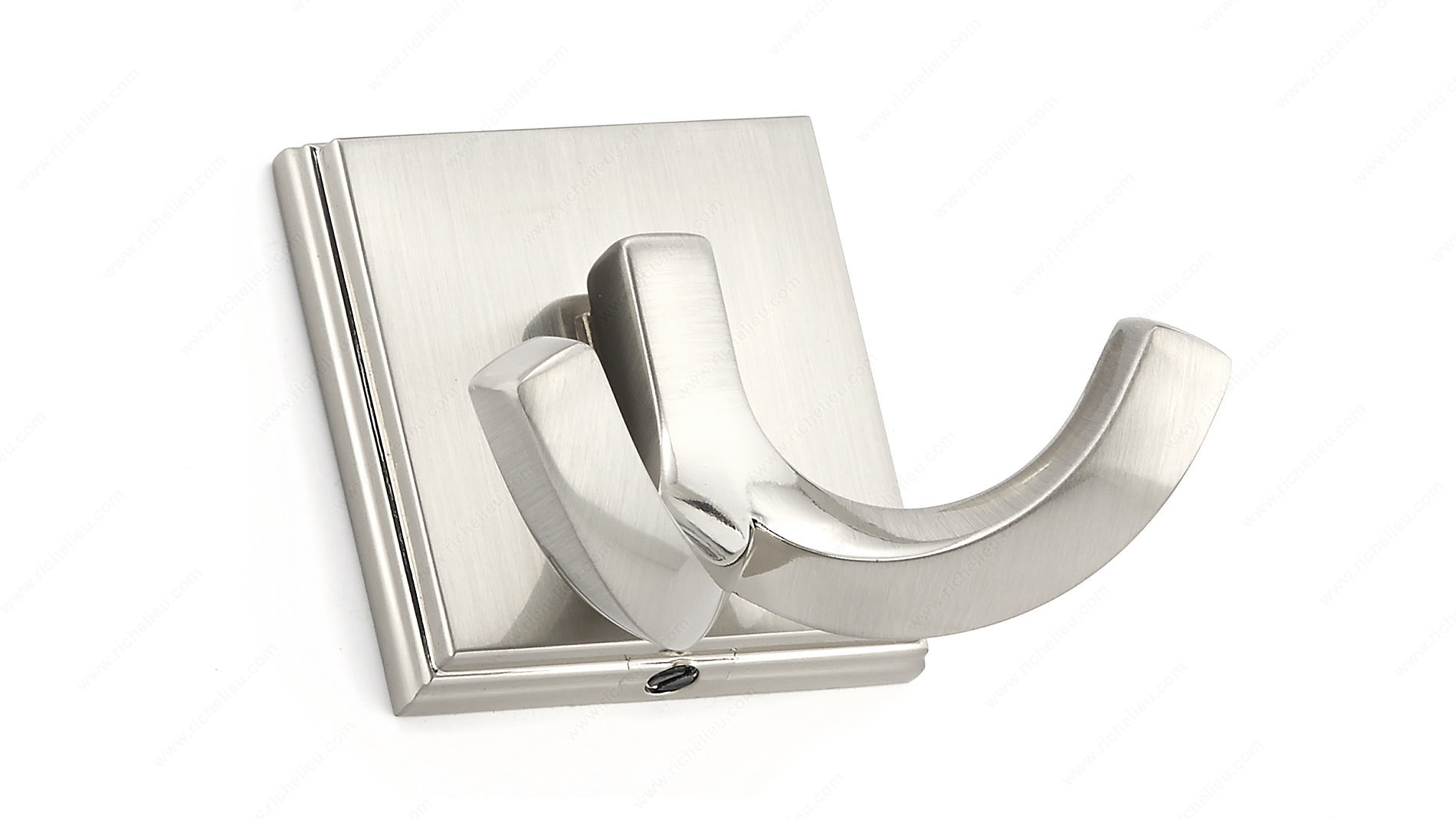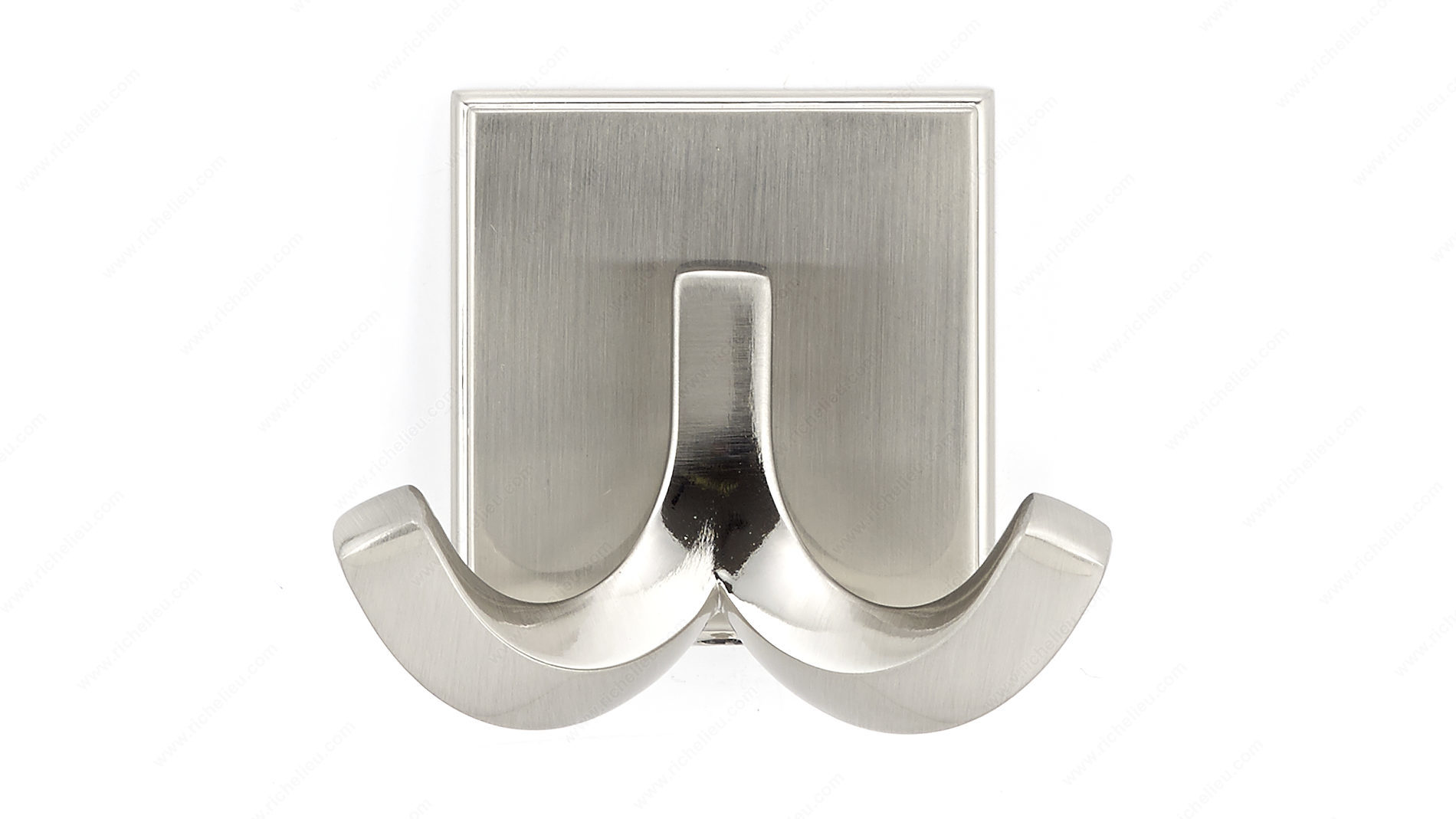 Richelieu BP7952195 Transitional Metal Hook - 7952 enhances both functionality and aesthetic appeal in any space. With its sleek brushed nickel finish and elegant gray and chrome color scheme, this double hook seamlessly blends into a variety of interior designs, catering to discerning tastes. Standing at a height of 2 1/8 inches and featuring a compact projection of 1 27/32 inches, it is an ideal choice for entryways, bathrooms, or kitchens where space is at a premium. Designed to hold up to 11 pounds, this robust metal hook is perfect for hanging coats, bags, or towels, providing practical storage solutions without compromising style. The transitional hook style allows it to complement both modern and traditional décor, making it a versatile addition to any room. Installation is a breeze, as screws are included for your convenience. Whether you're a building professional seeking reliable hardware or a knowledgeable homeowner looking to elevate your interior space, the Richelieu BP7952195 is the perfect choice. With its refined detail and sturdy construction, this hook is not just a functional item but a sophisticated accent that will enhance your home’s overall elegance.
