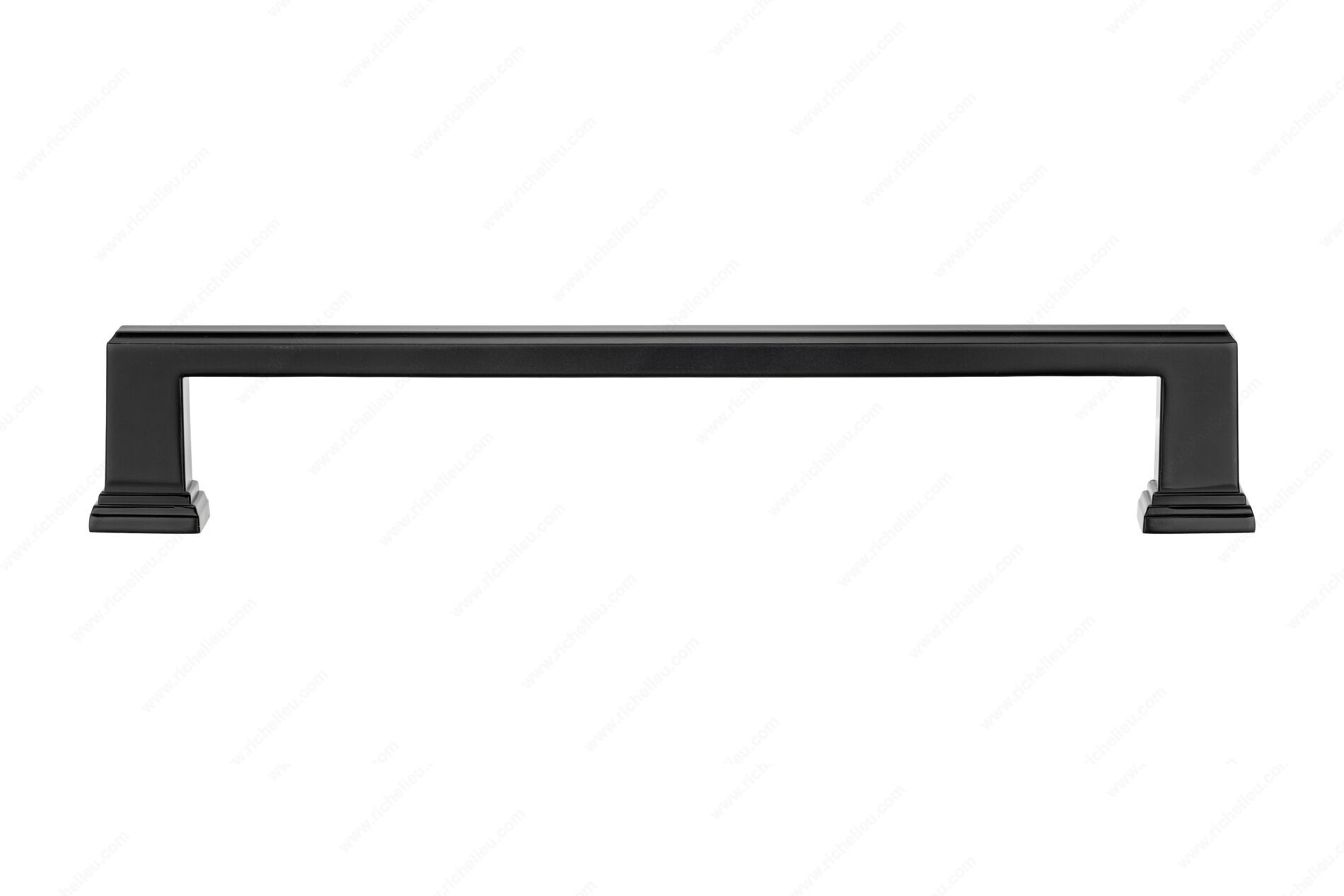Richelieu BP795304900 Transitional Metal Pull - 795 is designed to elevate your kitchen and bathroom spaces with its refined aesthetic. This pull features a simple rectangular shape that harmoniously blends with ornamental detailing on the square base, creating a sophisticated look that complements various décor styles. The pull measures 13 1/4 inches in length with a center-to-center spacing of 12 inches, making it an ideal choice for cabinets and appliances alike. Crafted from durable zamak and finished in a sleek matte black, this pull not only delivers on style but also on longevity. Its overall projection of 2 5/16 inches ensures a comfortable grip, while the 5/8-inch width adds to its elegant profile. Included with the pull are M6 screws for easy installation, ensuring a hassle-free setup. The Richelieu BP795304900 is part of the versatile 795 collection, allowing for cohesive design across your space. Shipped conveniently via UPS, this pull is ready to enhance your home’s functionality and visual appeal. Choose this transitional piece to bring a touch of modern sophistication to your cabinetry and appliances.