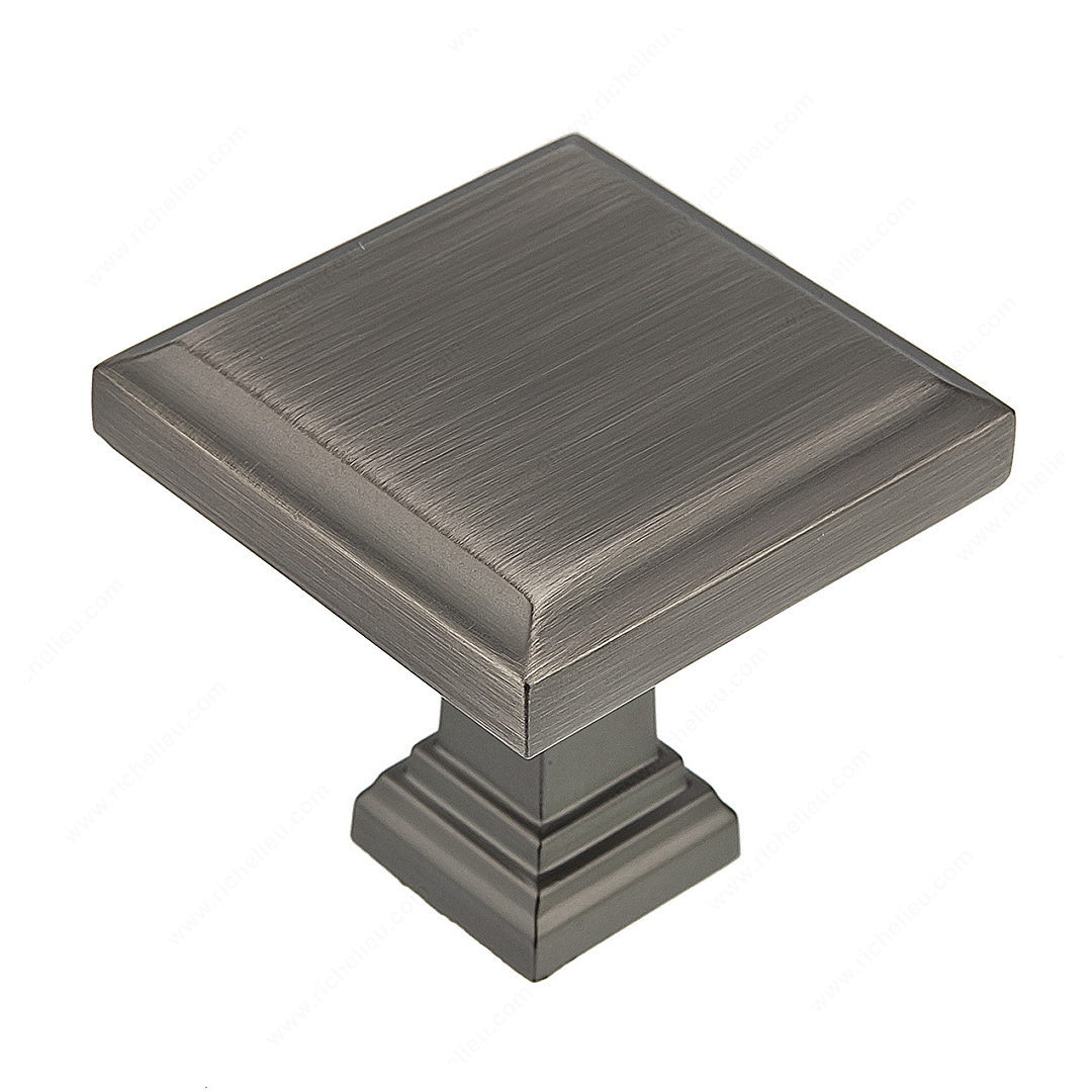 Richelieu BP79532143 Transitional Metal Knob - 7953 offers a refined touch to your kitchen and bathroom cabinetry. This square knob is designed with a beveled edge and a distinctive base, making it an elegant addition to any furniture piece. Crafted from durable zamak, this knob combines both strength and style, ensuring it withstands daily use while enhancing the overall aesthetic of your space. Measuring 1 1/4 inches in length, width, and projection, the BP79532143 is perfectly sized for comfortable grip and functionality. The antique nickel finish adds a sophisticated flair, beautifully complementing the gray and chrome accents. This transitional design fits seamlessly with various décor styles, from modern to classic. Included with the knob is an 8/32 inch screw for easy installation, allowing for a hassle-free upgrade to your cabinetry. Part of the complete 795 collection, this knob can be paired with other items from Richelieu to create a cohesive look throughout your home. Available for shipping via UPS, the Richelieu BP79532143 Transitional Metal Knob is a smart choice for professionals and homeowners alike, looking to elevate their interior design with quality hardware that combines functionality and elegance.