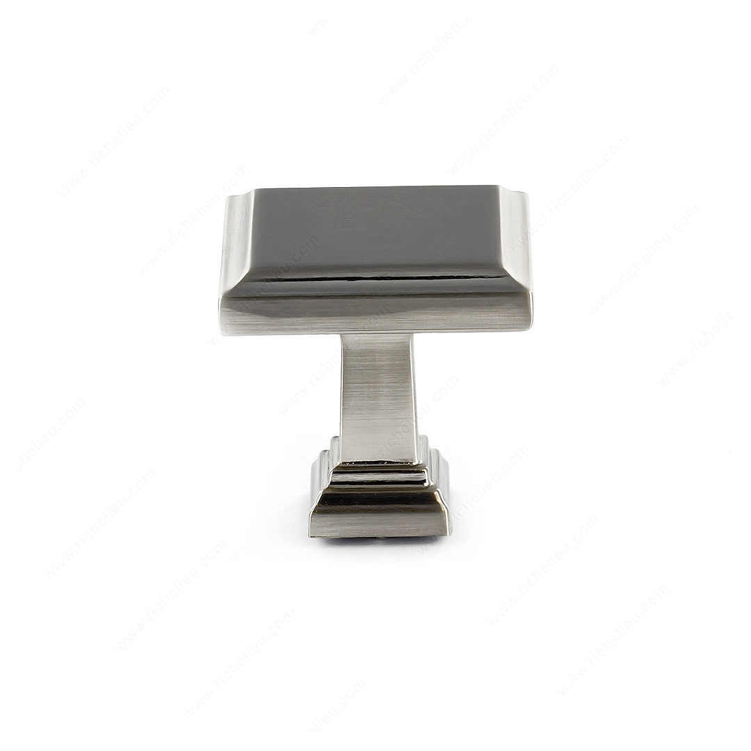 Richelieu BP79532195 Transitional Metal Knob - 7953 offers a perfect blend of functionality and style, making it an ideal addition to your kitchen and bathroom cabinetry. This transitional square knob features a beautifully beveled edge and a distinctive base, adding an elegant touch to any furniture piece. Crafted from durable zamak, it ensures longevity while maintaining a sleek appearance. With an overall dimension of 1 1/4 inches in length, width, and projection, this knob is perfectly sized for comfortable gripping and seamless integration into various design themes. The brushed nickel finish, identified by finish number 195, complements a wide range of color schemes, particularly the gray and chrome tones, enhancing the aesthetic of your space. Each knob comes with an included 8/32 inch screw, making installation straightforward and hassle-free. As part of the Richelieu 795 collection, it aligns perfectly with other pieces, allowing you to create a cohesive look throughout your home. Whether you are renovating or simply updating your hardware, the Richelieu BP79532195 Transitional Metal Knob provides both elegance and practicality, elevating the overall appeal of your cabinetry and furniture.