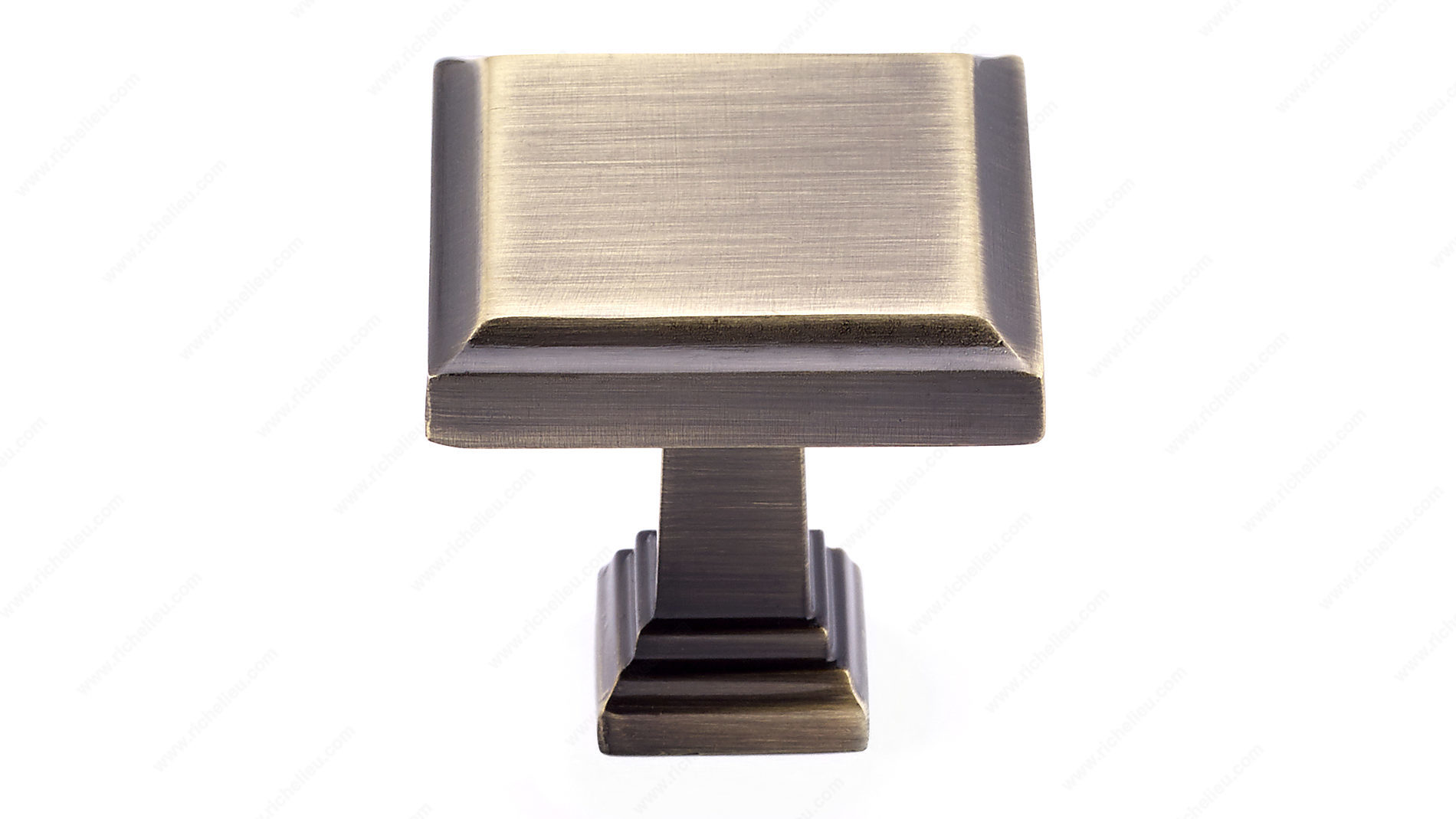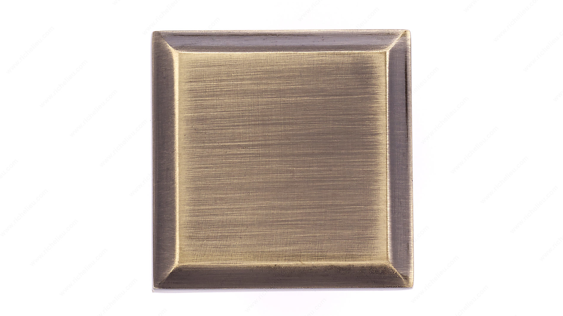 Richelieu BP79532AE Transitional Metal Knob - 7953 offers an exquisite blend of style and functionality, making it an ideal choice for enhancing the aesthetic of your kitchen and bathroom furniture. This knob features a distinctive square shape with a beveled edge, lending a sophisticated touch to cabinets and drawers. Its elegant Antique English finish beautifully complements the yellow and brass color scheme, ensuring it stands out while also harmonizing with various design themes. Crafted from durable zamak, the knob is built to withstand daily use while maintaining its charm. Measuring 1 1/4 inches in length, width, and projection, it provides a comfortable grip for effortless operation. The knob is part of the complete 795 collection, allowing for cohesive design throughout your space. Installation is straightforward, as it comes with an included 8/32 inch screw, making it easy for professionals and DIY enthusiasts alike to upgrade their interiors. With its transitional style, the Richelieu BP79532AE knob is a versatile addition that enhances any cabinetry, ensuring both beauty and practicality in your home.