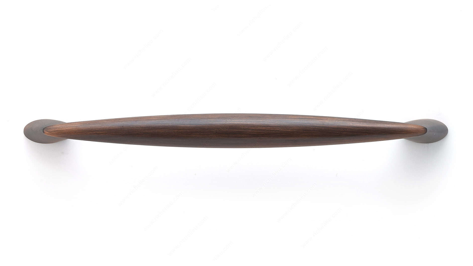 Richelieu BP805128BORB Modern Metal Pull - 805 offers a sleek and contemporary design that beautifully enhances any kitchen or bathroom space. With its simple tapered lines, this pull provides an elegant touch that complements a variety of decors. The brushed oil-rubbed bronze finish adds warmth and sophistication, making it an ideal choice for those seeking a modern aesthetic. Measuring 5 7/8 inches in overall length and featuring a center-to-center spacing of 5 1/32 inches, this pull is perfectly sized for easy handling while ensuring a seamless fit in your cabinetry. Constructed from durable zamak, it promises longevity and resilience against daily wear. The BP805128BORB pull has a projection of 1 3/16 inches and a width of 15/32 inches, providing a comfortable grip. Each pull comes with 8/32 inch screws included for straightforward installation, allowing you to update your space with minimal effort. Whether you're renovating or simply looking to refresh your home, this modern pull not only serves a functional purpose but also acts as a statement piece in your cabinetry. Elevate your interiors with Richelieu's exemplary craftsmanship and distinctive style.