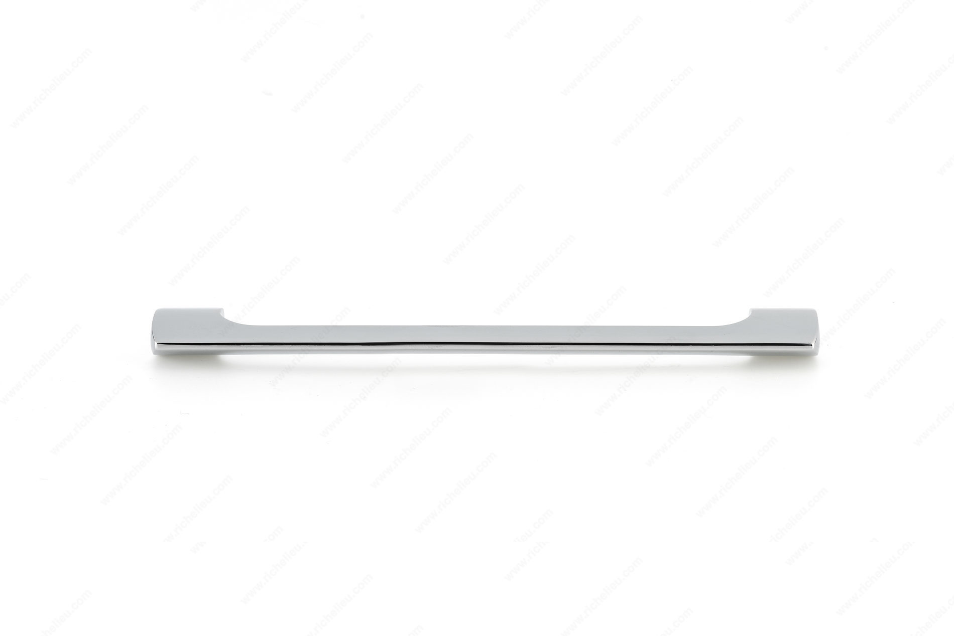 Richelieu BP814192140 Modern Metal Pull - 814 offers a striking blend of sophistication and functionality, making it an ideal addition to contemporary kitchens and bathrooms. This elegantly designed handle features a sleek gray and chrome color palette, harmonizing seamlessly with various decor styles. With an overall length of 7 7/8 inches and a center-to-center measurement of 7 9/16 inches, this pull is perfectly sized to provide a comfortable grip while enhancing the aesthetics of cabinetry. Crafted from high-quality zamak, the BP814192140 ensures durability and longevity, making it a reliable choice for everyday use. The polished chrome finish not only adds a touch of modern elegance but also ensures easy maintenance and resilience against wear over time. The handle has a projection of 1 5/32 inches and a width of 15/32 inches, providing ample space for a secure grip. Each pull comes complete with 8/32 inch screws for easy installation, allowing you to upgrade your hardware effortlessly. Elevate your living spaces with the refined look and feel of the Richelieu BP814192140 Modern Metal Pull, a perfect choice for building professionals and discerning homeowners alike.