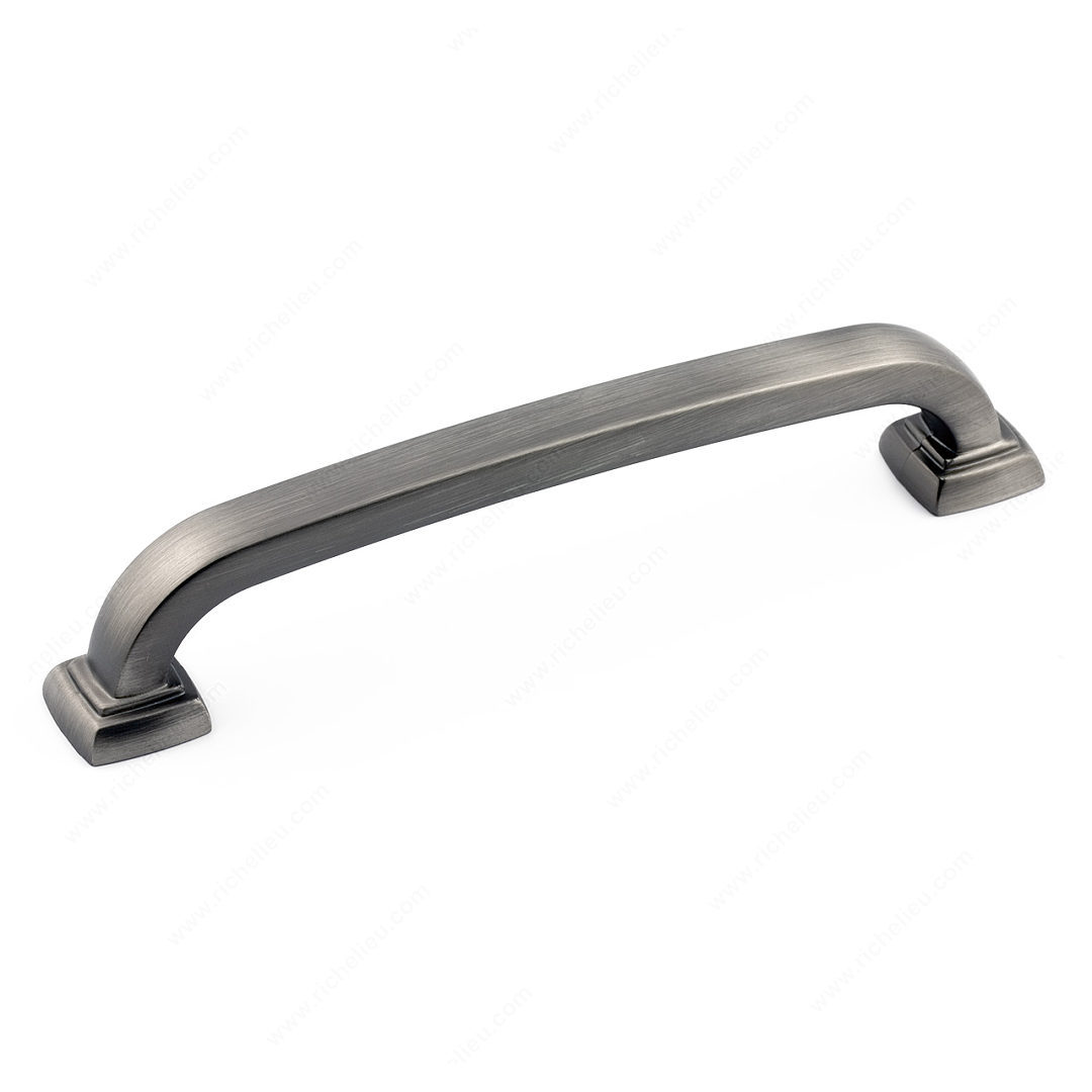 Richelieu BP815128143 Transitional Metal Pull - 815 offers a perfect blend of modern design and timeless appeal. Crafted from durable zamak, this pull features a sleek square tube handle with rounded corners, ensuring both comfort and style in any application. Measuring 5 25/32 inches in overall length, with a center-to-center measurement of 5 1/32 inches, it fits seamlessly into various cabinetry and furniture designs. The pull showcases an elegant antique nickel finish, complemented by gray and chrome accents, making it an attractive choice for transitional spaces. Its overall projection of 1 3/16 inches provides a comfortable grip while maintaining a streamlined profile. With a width of 15/32 inches, it strikes the perfect balance between visibility and subtlety. Included with the pull are 8/32 inch screws for easy installation, ensuring that this stylish hardware can be added to your projects without hassle. As part of the complete 815 collection from Richelieu, it allows for cohesive design throughout your space. Whether for kitchen cabinetry, bathroom vanities, or furniture enhancements, this transitional metal pull brings functionality and elegance to the forefront. Choose Richelieu BP815128143 for a refined finishing touch that elevates any interior.