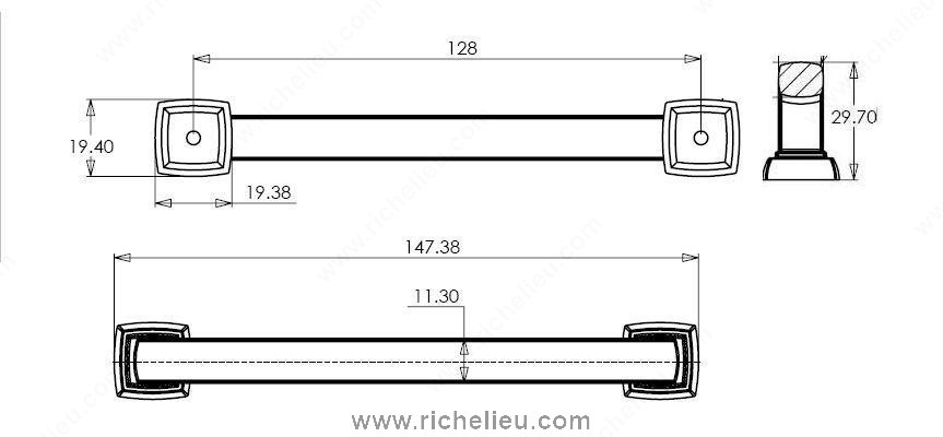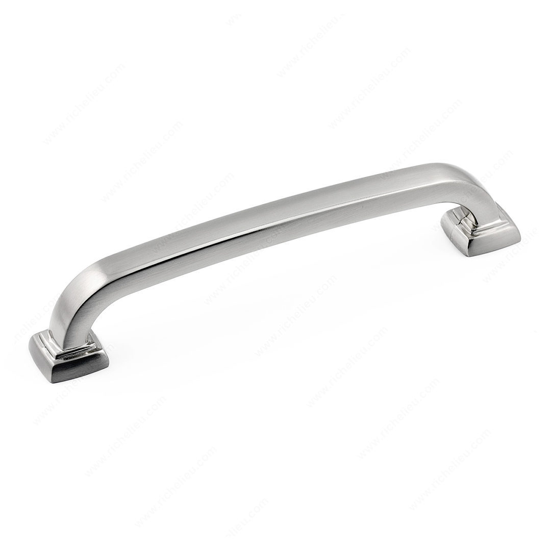 Richelieu BP815128195 Transitional Metal Pull - 815 offers a perfect blend of modern aesthetics and functional design. Crafted from high-quality zamak, this pull features a square tube handle with elegantly rounded corners, ensuring a comfortable grip and a sleek look. The brushed nickel finish in gray and chrome enhances its contemporary appeal, making it an excellent choice for various cabinetry and furniture styles. With a center-to-center measurement of 5 1/32 inches, this pull is versatile enough to fit most applications. The overall dimensions measure 5 25/32 inches in length, 15/32 inches in width, and a projection of 1 3/16 inches, allowing for easy installation and seamless integration into your design. This transitional pull is part of the complete 815 collection, allowing for cohesive styling throughout your space. Included with the pull are 8/32 inch screws, making installation straightforward and hassle-free. Whether you're upgrading kitchen cabinets or enhancing the look of furniture, the Richelieu BP815128195 Transitional Metal Pull combines form and function, elevating your interiors with style and sophistication. Ideal for building professionals and discerning homeowners alike, this pull is sure to impress.