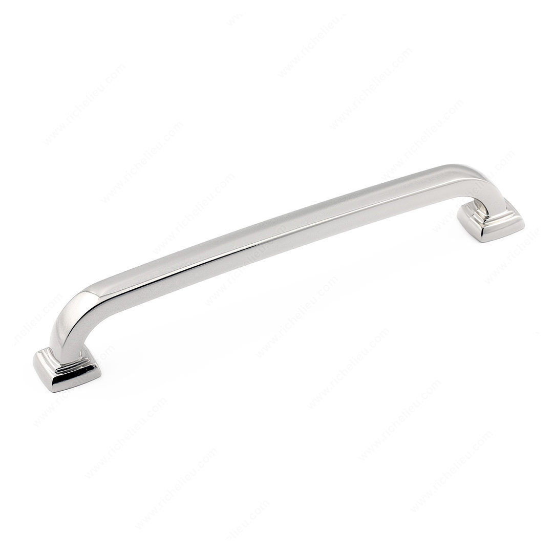 Richelieu BP815160180 Transitional Metal Pull - 815 offers a sophisticated blend of modern design and functionality. This pull features a square tube handle with elegantly rounded corners, complemented by a square flange at each end, making it a stylish addition to any space. Crafted from durable zamak, it ensures longevity and reliability for daily use. With an overall length of 7 1/16 inches and a center-to-center measurement of 6 5/16 inches, this pull is designed to fit standard cabinetry easily. The polished nickel finish adds a touch of elegance, while its gray and chrome color scheme makes it versatile enough to harmonize with various interior styles. The pull has a subtle projection of 1 3/16 inches, providing a comfortable grip without overwhelming the design of your cabinetry. Installation is straightforward, as the product comes with 8/32 inch screws included. Whether you're updating kitchen cabinets or enhancing furniture pieces, the Richelieu BP815160180 is a perfect choice for those seeking a transitional style that combines aesthetics with practicality. Explore the complete collection for additional coordinating options to elevate your design vision.