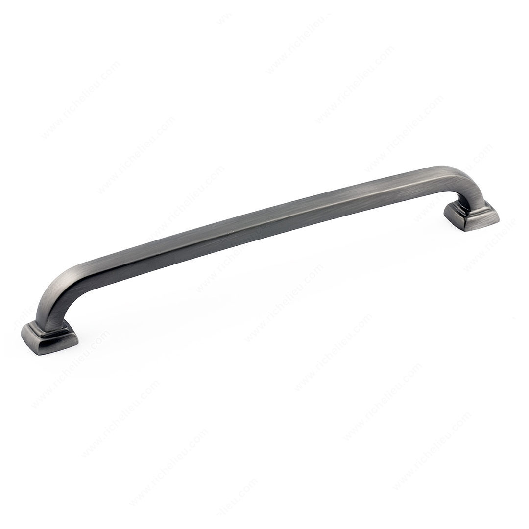 Richelieu BP815192143 Transitional Metal Pull - 815 showcases a modern yet classic design that effortlessly enhances any cabinetry or furniture piece. This pull features a square tube handle with rounded corners, providing both comfort and style. Each end is adorned with a square flange, reinforcing its sturdy and sophisticated appearance. With a center-to-center measurement of 7 9/16 inches, this pull is perfect for various applications, ensuring a seamless fit on your cabinets or drawers. The overall length measures 8 5/16 inches, while the projection is 1 3/16 inches, making it functional and easy to grip. Constructed from high-quality zamak, this pull combines durability with an appealing aesthetic. The antique nickel finish, specifically the finish number 143, adds a touch of elegance, while the gray and chrome color scheme complements a variety of design themes. This transitional style is versatile enough to work with both traditional and contemporary spaces. Installation is straightforward, as it includes 8/32 inch screws for easy mounting. Whether you're upgrading your kitchen or enhancing a custom project, Richelieu's BP815192143 Transitional Metal Pull is an excellent choice for professionals and discerning homeowners alike.
