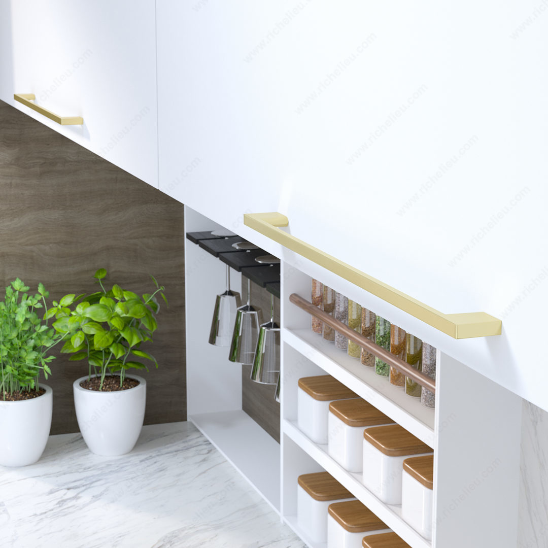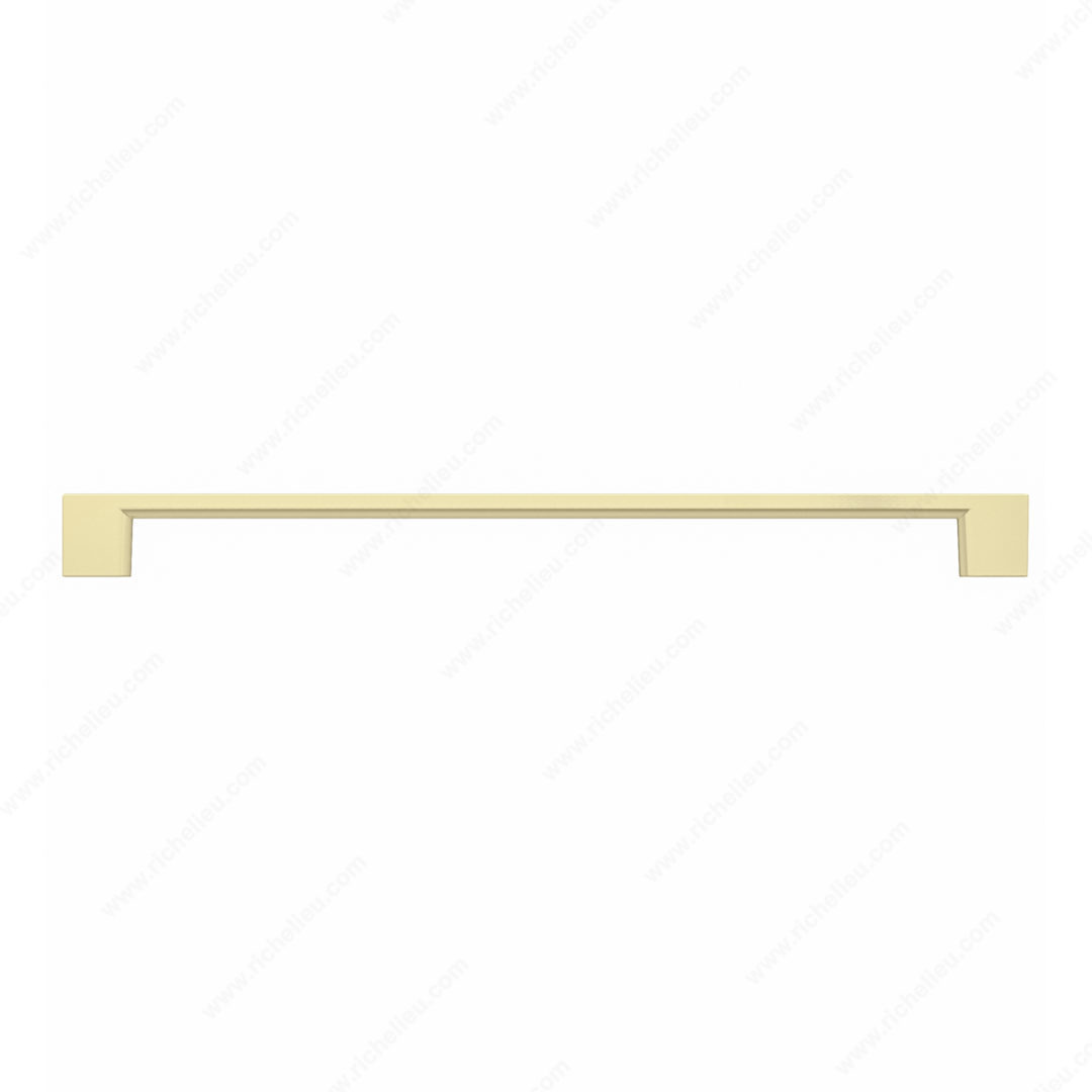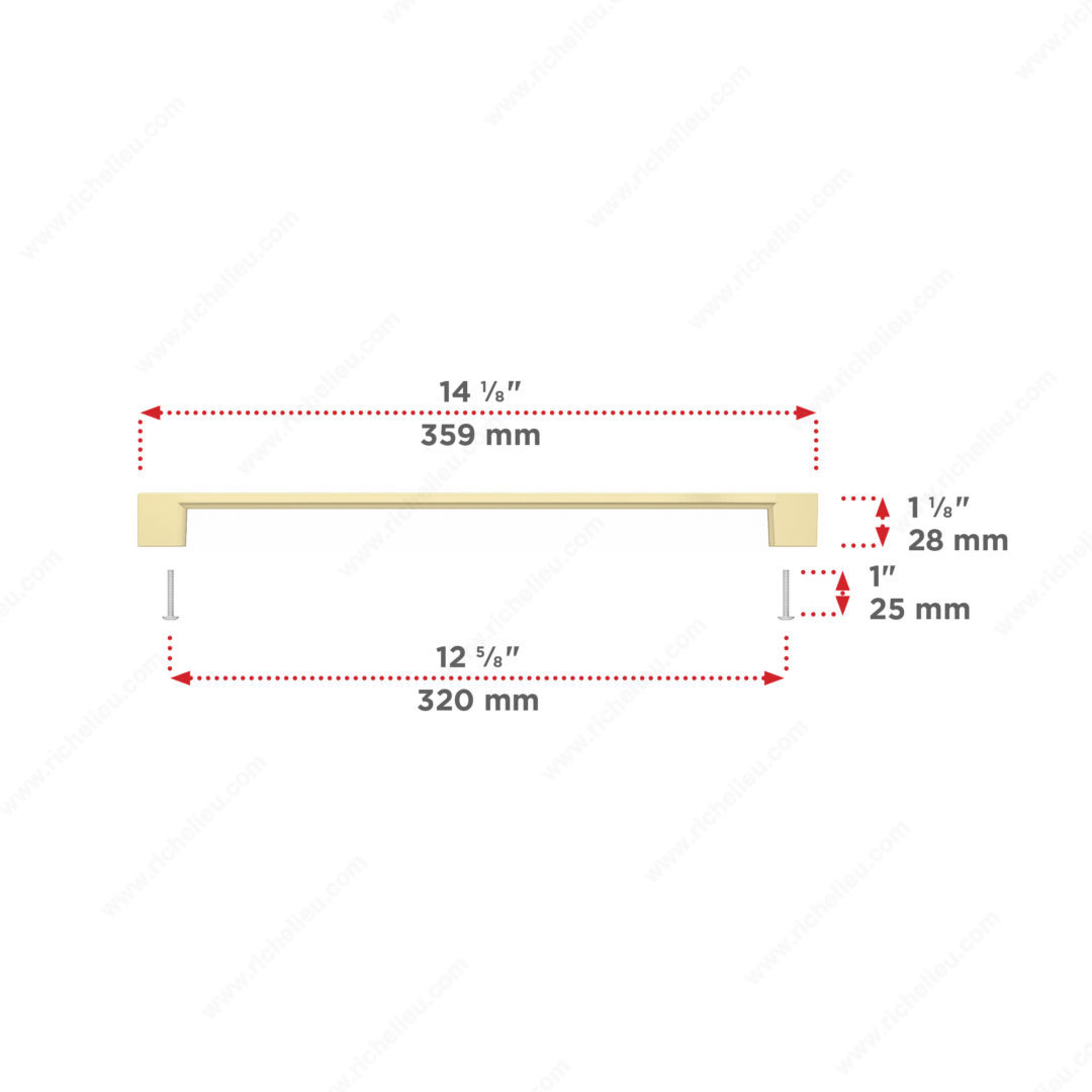 Richelieu BP8160320160 Modern Metal Pull - 8160 offers a sophisticated and stylish solution for enhancing your cabinetry. Designed with simple, straight lines, this pull seamlessly fits into various décor styles, making it a versatile choice for both modern and traditional spaces. Crafted from durable zamak, this pull showcases a stunning satin brass finish, adding a touch of elegance to any kitchen or furniture piece. With an overall length of 14 1/8 inches and a center-to-center measurement of 12 5/8 inches, it’s ideal for cabinets and drawer fronts alike. The 1-1/4 inch (32 mm) handle can also serve as a knob, providing flexibility in design. For a coordinated look, a matching finish knob is available in the suggested products. This pull is available in eight attractive finishes, including options for 12- and 18-inch appliance pulls, ensuring you can find the perfect fit for your project. Each pull comes packaged in a convenient bag and includes the necessary 8/32 inch x 25 mm screws for straightforward installation. Elevate your cabinetry with the refined and modern design of the Richelieu BP8160320160 pull, a perfect blend of form and function.