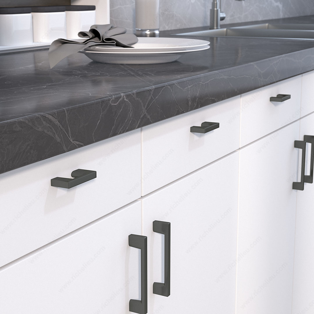 Richelieu BP816032900 Modern Metal Pull - 8160 enhances the aesthetic appeal of your cabinetry with its sleek and elegant design. Crafted from high-quality Zamak, this modern pull features simple, straight lines that seamlessly complement any décor style, from contemporary to transitional. Its matte black finish adds a touch of sophistication, making it an ideal choice for those looking to elevate their kitchen or bathroom spaces. Measuring 1-1/4 inches center-to-center, this pull is versatile enough to be used as a knob, while a matching finish knob is available for a coordinated look. The overall dimensions include a length of 2-1/4 inches, a projection of 1-1/32 inches, and a width of 5/16 inches, ensuring it fits comfortably in hand. With options for 12- and 18-inch appliance pulls, you can customize your cabinetry to suit your specific needs. The Richelieu BP816032900 is shipped via UPS and includes screws for easy installation. This pull is part of the new collection and is available in eight different finishes, allowing you to find the perfect match for your project. Elevate your space with this stylish and functional accessory that embodies modern design and durability.