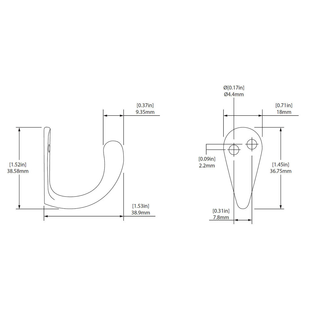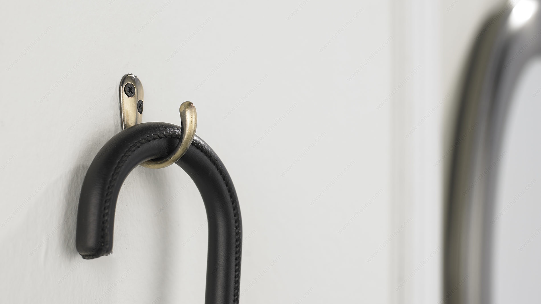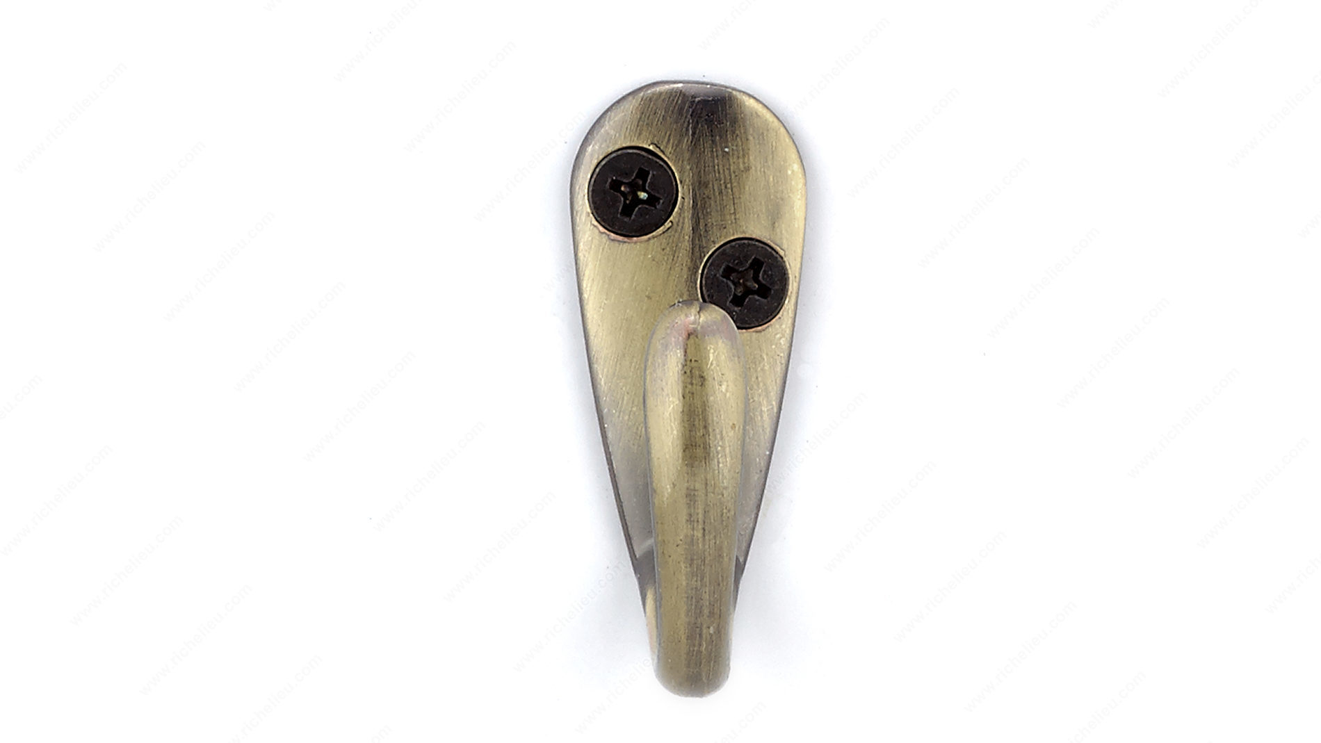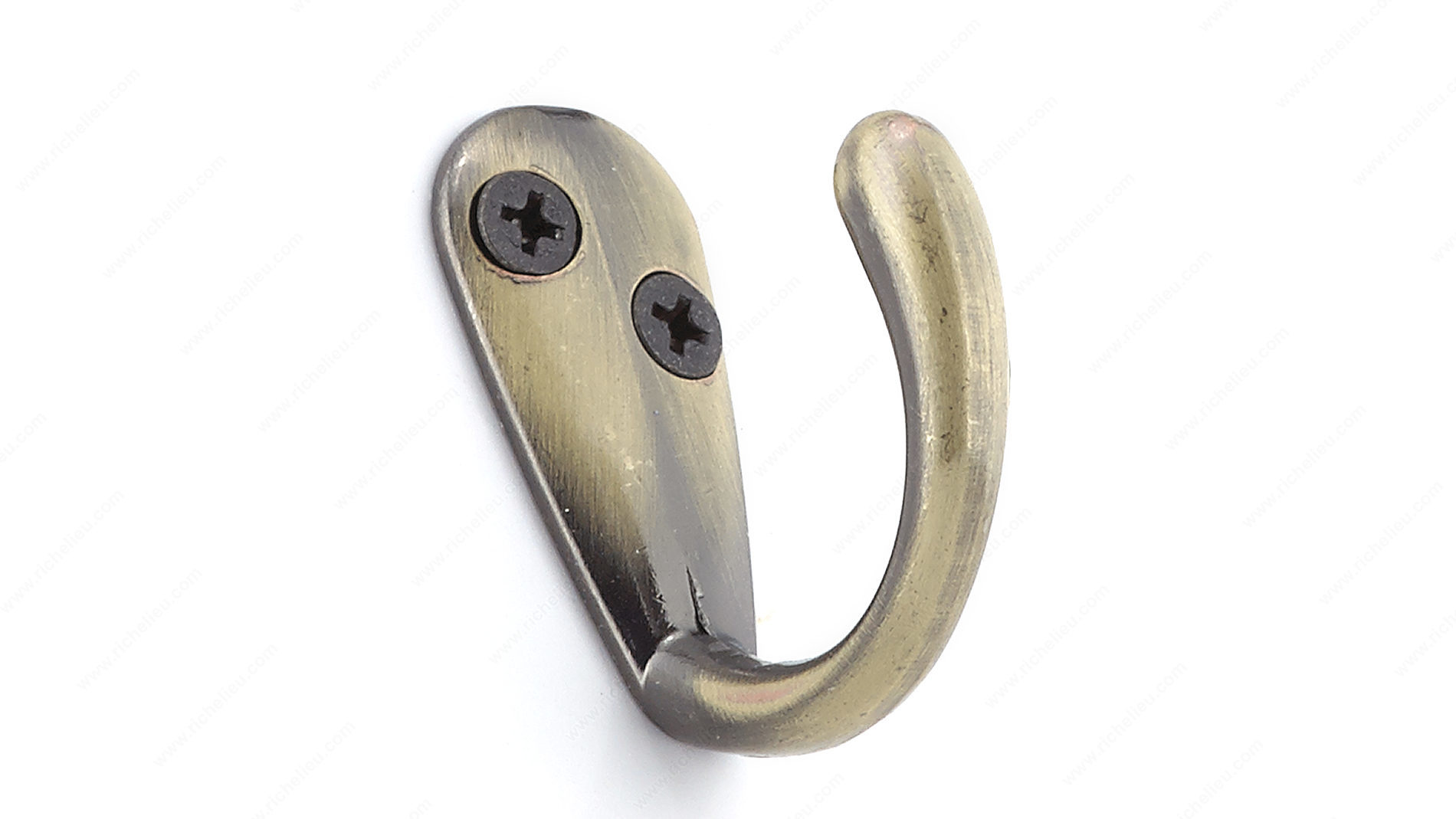 Richelieu BP81845BB 1-1/2 in Single Utility Hook - 818 provides an effective solution for organizing your space while adding a touch of elegance. This 8-piece value pack is designed to help you eliminate clutter efficiently, making it perfect for both professional and home use. Crafted from durable metal, each utility hook features a striking antique brass finish, lending a classic yet functional aesthetic to any environment. With an overall height and projection of 1 17/32 inches and a width of 23/32 inches, these hooks are compact enough to fit in various locations without overwhelming the space. Each hook boasts an impressive load capacity of 11 pounds, allowing you to securely hang a variety of items, from tools in a workshop to coats in an entryway. Installation is a breeze, with screws included for your convenience, ensuring that you can quickly set up your new organizational system. Whether you are a building professional looking to enhance functionality or a homeowner in need of practical storage solutions, the Richelieu BP81845BB utility hooks combine style and strength, making them an ideal choice for your organizing needs. Transform your space today with this versatile and attractive product.