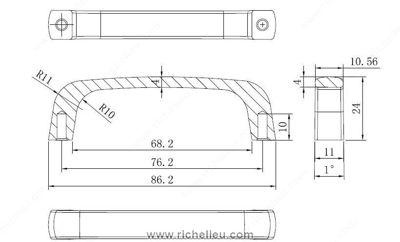 Richelieu BP82076195 Modern Metal Pull - 820 offers a sleek and contemporary design that easily elevates the aesthetic of any kitchen or bathroom. Crafted from durable Zamak, this pull features a brushed nickel finish that beautifully complements its gray and chrome color scheme. With an overall length of 3 3/8 inches and a width of 7/16 inches, it provides a comfortable grip while maintaining a minimalist profile. Designed with smooth rounded corners, the BP82076195 is not only stylish but also user-friendly, making it a perfect fit for modern interiors. The pull has a center-to-center measurement of 3 inches, ensuring compatibility with various cabinet configurations. Its projection of 15/16 inches allows for easy access without protruding too far, ideal for tight spaces. Included with the pull are 8/32 inch screws for effortless installation. This product is part of the complete Richelieu Collection 820, allowing homeowners and professionals to coordinate with other pieces seamlessly. Ship via UPS, this pull is a convenient option for quick home upgrades. Whether you’re renovating or simply refreshing your space, the Richelieu BP82076195 Modern Metal Pull is a stylish choice that combines functionality with contemporary design.