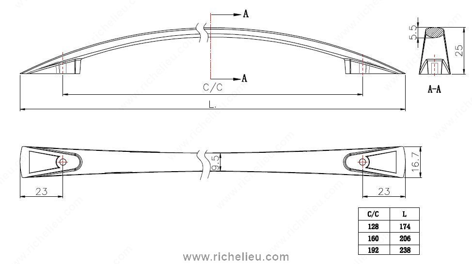 Richelieu BP821160195 Modern Metal Pull - 821 is the perfect addition to elevate your contemporary kitchen and bathroom furniture. Designed with a modern aesthetic in mind, this shallow bow pull combines functionality with style, making it an ideal choice for any renovation or new build. Measuring 8 1/8 inches in length, this pull features a center-to-center measurement of 6 5/16 inches, ensuring it fits seamlessly into your cabinetry. The brushed nickel finish, along with the sleek gray and chrome color options, provides a sophisticated touch that complements a variety of decor styles. Crafted from durable zamak, this pull promises longevity and resistance to wear over time. With overall dimensions of 21/32 inches in width and a projection of 31/32 inches, it offers a comfortable grip while maintaining a streamlined appearance. Each pull comes with the necessary 8/32 inch screws for easy installation, allowing for a hassle-free upgrade to your space. Whether you’re a building professional or a knowledgeable homeowner, the Richelieu BP821160195 Modern Metal Pull - 821 is a stylish and practical choice that enhances both the look and functionality of your furniture.