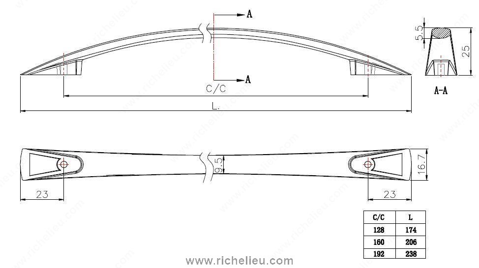Richelieu BP821160BORB Modern Metal Pull - 821 is the perfect addition to elevate the aesthetics of your modern kitchen and bathroom furniture. Crafted from durable zamak, this pull showcases a contemporary shallow bow design, making it both stylish and functional. With an overall length of 8 1/8 inches and a center-to-center measurement of 6 5/16 inches, this pull is designed to fit seamlessly into various cabinetry styles. The brushed oil-rubbed bronze finish in rich brown and bronze tones adds a touch of sophistication, while its sleek projection of just 31/32 inches ensures it remains unobtrusive yet easy to grasp. Installation is a breeze, thanks to the included 8/32 inch screws, allowing for quick and straightforward mounting. The modern design not only enhances visual appeal but also provides a comfortable grip, making it ideal for everyday use. Whether you're updating your cabinetry or embarking on a new build, the Richelieu BP821160BORB pull is a versatile choice that combines elegance and practicality. Ship via UPS for convenience, and transform your spaces with this stylish hardware that reflects contemporary design sensibilities.