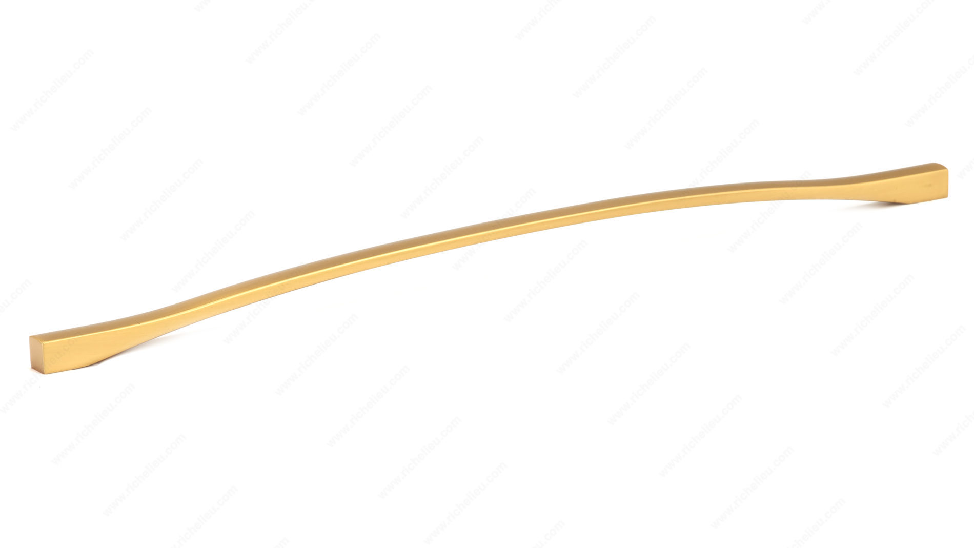 Richelieu BP8232352158 Modern Metal Pull - 8232 is an exquisite addition designed to enhance the elegance of your furniture and cabinetry. With its arched form and square-shaped ends, this pull seamlessly blends style and functionality. Measuring 15 inches overall with a center-to-center distance of 13 7/8 inches, it is ideal for a variety of applications, from kitchen cabinets to stylish furniture pieces. Crafted from durable zamak, the pull features a stunning Brushed Aurum Gold finish (Finish Number: 158), adding a touch of sophistication to any setting. The yellow and brass color scheme complements modern decor while offering a premium aesthetic that appeals to discerning homeowners and building professionals alike. The pull's overall projection measures 7/8 inches, ensuring comfort and ease of use. It is designed for effortless installation, with included 8/32 inch screws for a secure fit. Part of the complete collection model 3125/8232, the BP8232352158 makes a cohesive choice for your design projects. Whether you're upgrading cabinetry or enhancing furniture pieces, this modern metal pull is the perfect choice to achieve that subtle yet impactful elegance. Choose Richelieu for your next project and experience the difference in quality and design.