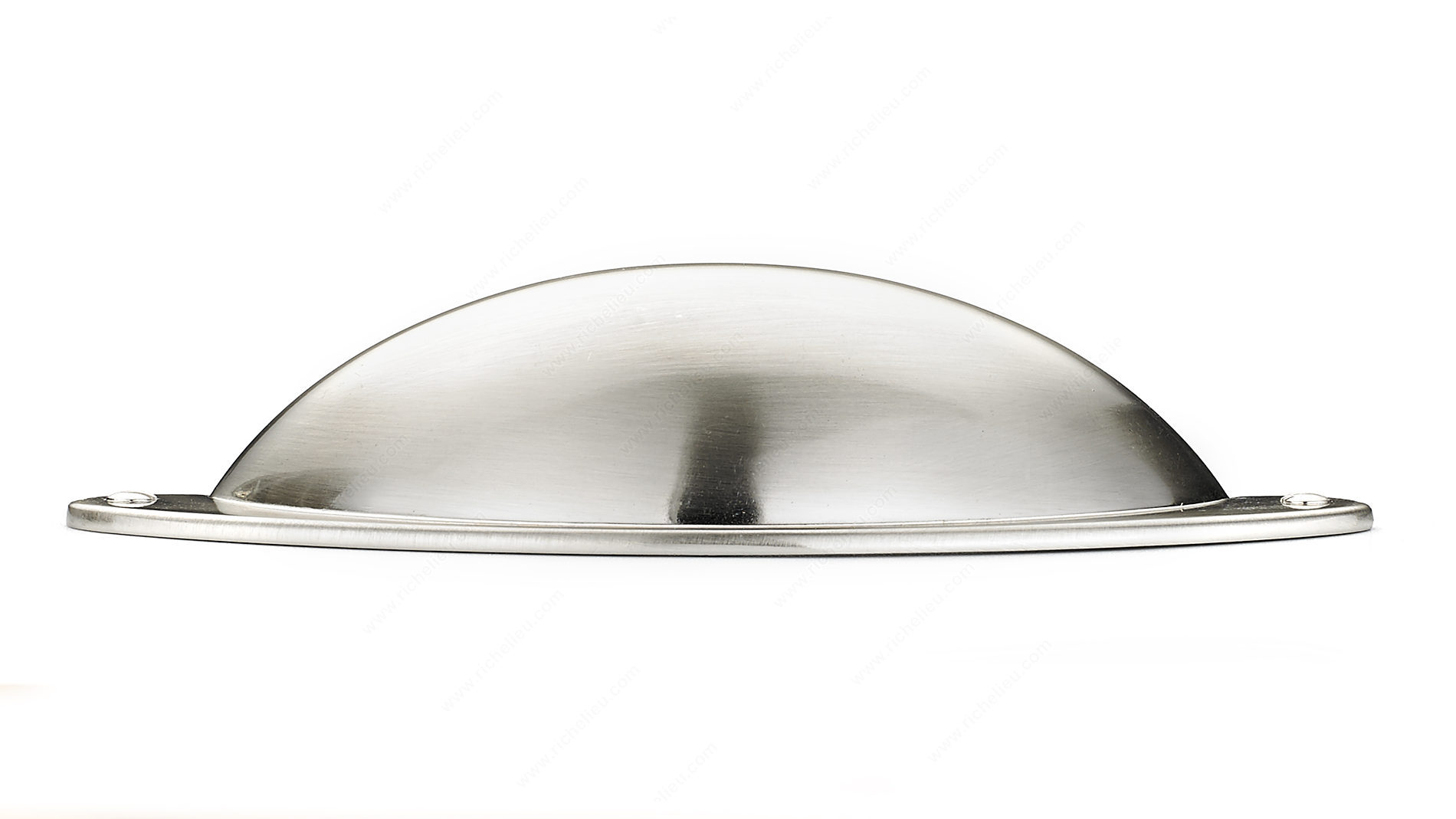 Richelieu BP82333195 Traditional Metal Pull - 8233 offers a captivating blend of classic design and modern functionality, making it an ideal choice for enhancing both kitchen and bathroom spaces. Its smooth dome shape, complemented by charming faux screw embellishments, adds a touch of elegance that can seamlessly integrate into various decor styles. This cup pull features a center-to-center measurement of 3 inches, making it suitable for a wide range of cabinetry. Crafted from durable zamak, it ensures long-lasting performance while the brushed nickel finish provides a sophisticated gray and chrome appearance that is both stylish and easy to maintain. The overall dimensions measure 4 29/32 inches in length, with a projection of 31/32 inches and a width of 31/32 inches, allowing for comfortable grip and use. Included with the pull are 8/32 inch screws to facilitate an effortless installation process. Packaged conveniently in a bag, this traditional pull not only enhances the aesthetic appeal of your spaces but also reflects quality craftsmanship that Richelieu is known for. Transform your cabinetry with the Richelieu BP82333195 Traditional Metal Pull - 8233 and enjoy the perfect combination of style and utility.