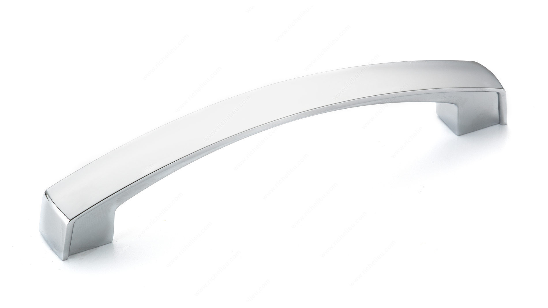 Richelieu BP8252128140 Transitional Metal Pull - 8252 brings a sophisticated touch to any bathroom or kitchen cabinetry. This elegantly designed bow pull features a wide curved shape that not only enhances functionality but also elevates the overall aesthetic of your home. Crafted from durable zamak, this pull is built to withstand daily use while adding a modern flair to your space. With a center-to-center measurement of 5 1/32 inches, the BP8252128140 is perfectly suited for a variety of cabinet sizes. The chrome finish, accentuated by a sleek gray tone, ensures a contemporary look that complements any décor style. Measuring 5 1/2 inches in overall length and 19/32 inches in width, it provides a comfortable grip, making it easy to open drawers and cabinets. The pull has an overall projection of 1 1/32 inches, providing ample space for fingers to grasp without being obtrusive. Each pull comes with included 8/32 inch screws for straightforward installation. Ideal for both kitchen and bathroom applications, the Richelieu Transitional Metal Pull is a practical and stylish addition to your interior design, bringing both form and function to your cabinetry.