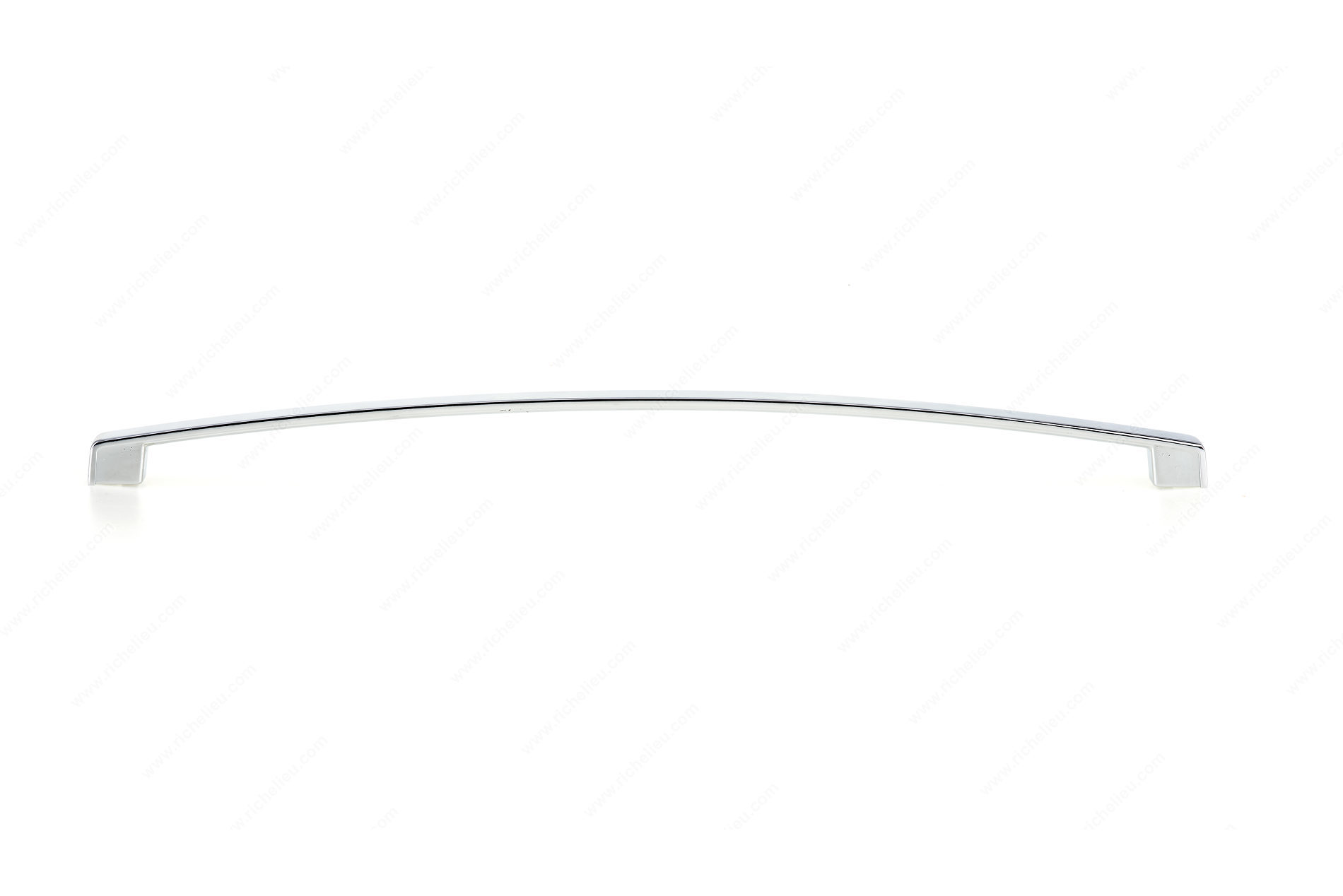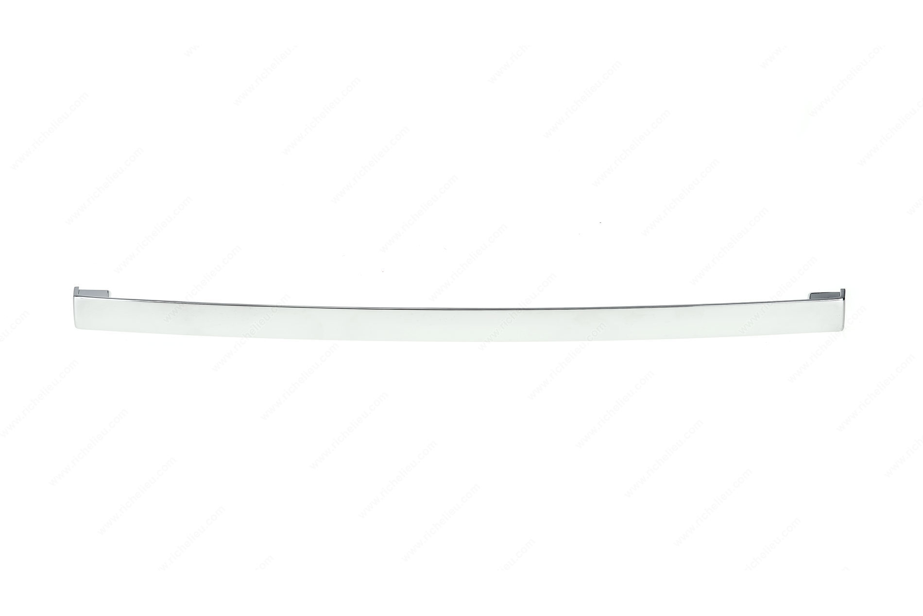 Richelieu BP8252320140 Transitional Metal Pull - 8252 enhances the aesthetic appeal of your kitchen or bathroom cabinetry with its sophisticated design. Crafted from durable Zamak, this pull features a striking wide curved silhouette that fits seamlessly into transitional decor styles, providing a perfect blend of modern and classic elements. Measuring 13 1/8 inches in length with a center-to-center measurement of 12 5/8 inches, this pull is designed for comfortable grip and ease of use. The gleaming chrome finish, complemented by a chic gray hue, adds a touch of elegance to any furniture piece. With an overall projection of 1 1/32 inches and a width of 19/32 inches, it offers a balanced presence without overwhelming your cabinetry. Installation is straightforward, as the pull comes with 8/32 inch screws included, making it easy to upgrade your space quickly. Whether you're renovating a kitchen or refreshing a bathroom, the Richelieu BP8252320140 pull is an excellent choice for those seeking quality and style. Ships conveniently via UPS, ensuring you receive your product promptly and ready to transform your living spaces.