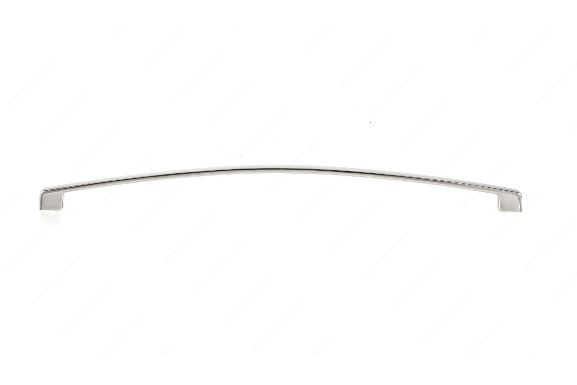 Richelieu BP8252320195 Transitional Metal Pull - 8252 revitalizes your kitchen or bathroom cabinetry with its elegant design. This transitional bow pull showcases a wide, curved shape that seamlessly marries form and function, making it an ideal choice for enhancing any home decor. Crafted from high-quality zamak, the pull features a brushed nickel finish that adds a sleek appearance while ensuring durability. With an overall length of 13 1/8 inches and a center-to-center measurement of 12 5/8 inches, it accommodates a variety of cabinet sizes and styles. The projection of 1 1/32 inches allows for comfortable grip and easy operation, making it a practical addition to your space. The color combination of gray and chrome provides a modern touch, complementing both contemporary and traditional interiors. Each pull comes with 8/32 inch screws included for straightforward installation, allowing you to upgrade your cabinetry hassle-free. Whether you’re renovating a kitchen, refreshing a bathroom, or updating furniture, the Richelieu BP8252320195 Transitional Metal Pull is the perfect accessory to elevate your design aesthetic while providing functionality. Make a statement in your home with this stylish and versatile hardware option.