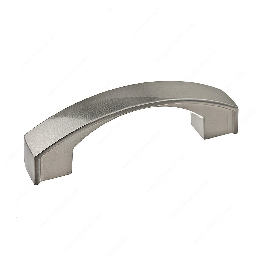 Richelieu BP825276195 Transitional Metal Pull - 8252 enhances the aesthetic appeal of bathroom or kitchen cabinets and furniture with its elegant design. This transitional bow pull features a distinctive wide curved shape that seamlessly integrates into various home décor styles, making it a versatile choice for any renovation project. With a center-to-center measurement of 3 inches, it offers a comfortable grip while adding a touch of sophistication. The pull comes in a sleek brushed nickel finish (Finish Number: 195), complemented by a stylish gray and chrome color scheme, ensuring that it stands out while maintaining a refined look. Crafted from durable zamak material, this pull is built to withstand everyday use without compromising on style. Measuring 3 7/16 inches in overall length, 19/32 inches in width, and projecting 1 1/32 inches, it is designed to fit most standard applications. Each pull is supplied with an 8/32 inch screw for easy installation, allowing you to upgrade your cabinetry effortlessly. Richelieu's BP825276195 Transitional Metal Pull is not just a functional hardware piece; it’s an essential design element that elevates your interior spaces. Transform your cabinets today with this striking pull that marries form and function beautifully.