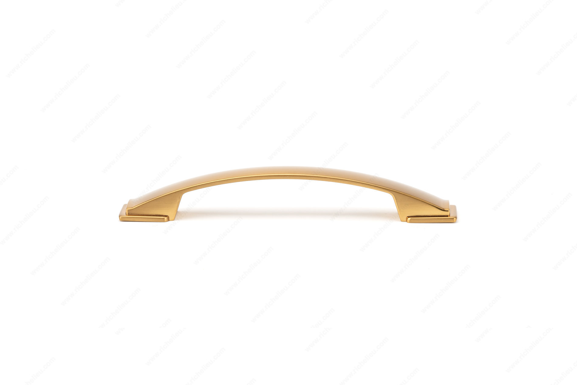 Richelieu BP83235128158 Transitional Metal Pull - 83235 elegantly blends contemporary design with traditional details, making it an exceptional choice for upgrading furniture and cabinetry. This stunning arched pull features embellished ends that add a touch of sophistication, perfect for modern interiors seeking a hint of classic charm. Crafted from durable Zamak, this pull ensures longevity while maintaining a refined aesthetic. With an overall length of 6 1/2 inches and a center-to-center measurement of 5 1/32 inches, it fits seamlessly into various cabinetry styles. The brushed aurum gold finish (Finish Number: 158) exudes warmth, making it an attractive accent against any surface. Measuring 31/32 inches in width and projecting 1 1/32 inches, this transitional-style pull is designed for both comfort and ease of use. Each pull comes with an 8/32 inch screw, ensuring a straightforward installation process. Whether you're a building professional or a discerning homeowner, the Richelieu BP83235128158 is a versatile addition that enhances functional elegance in any space. Elevate your design with this exquisite pull that merges style and practicality effortlessly.