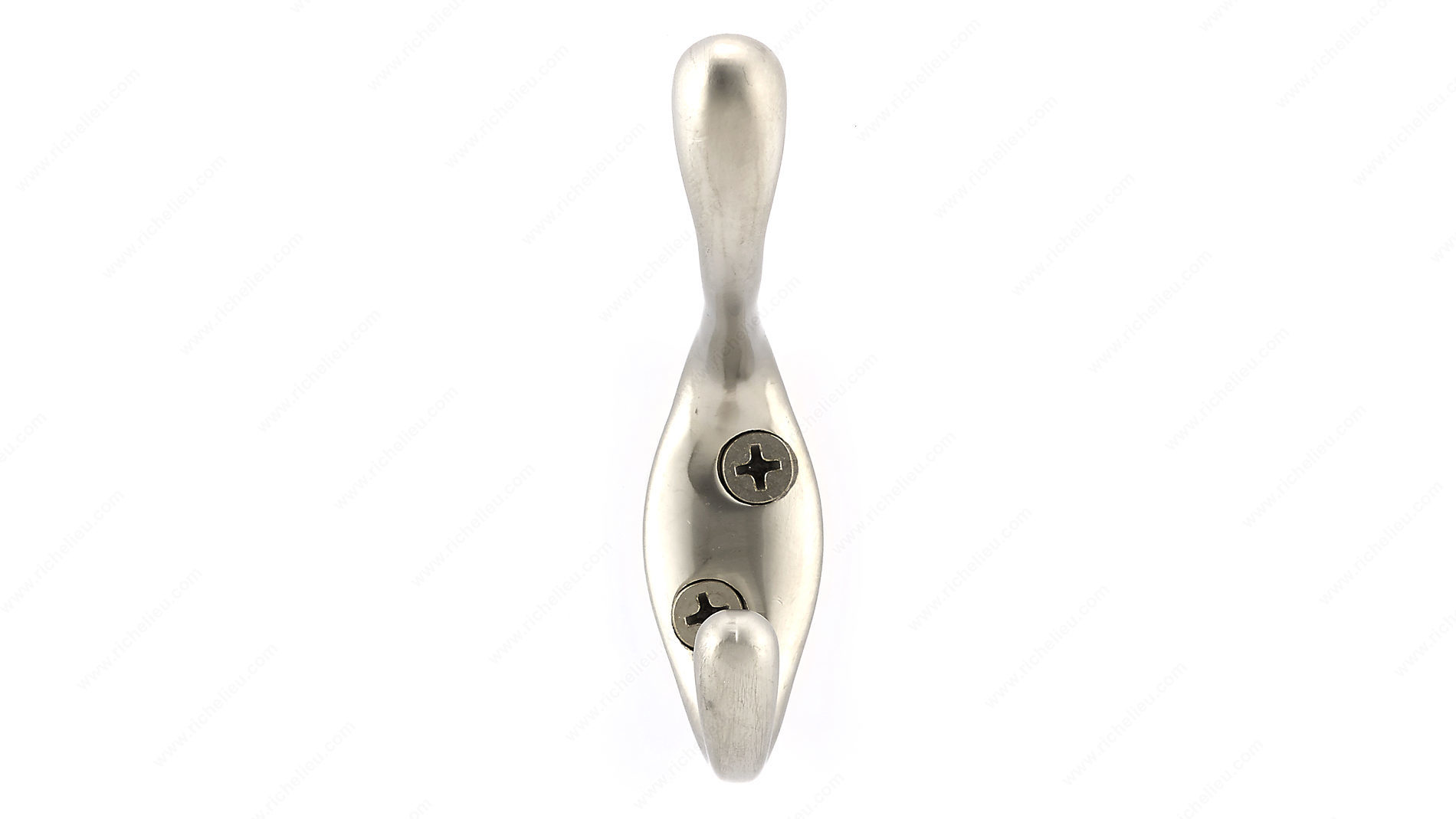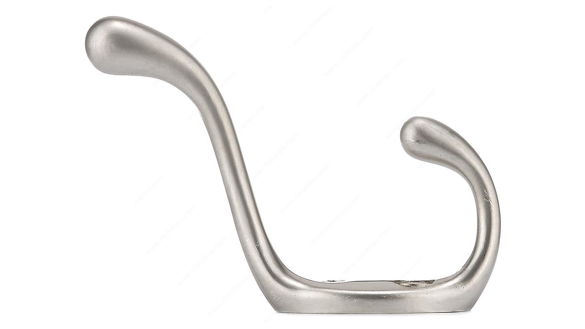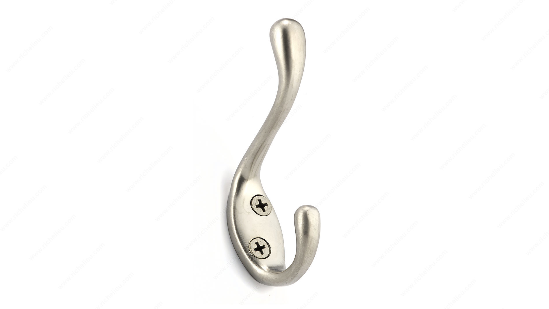 Richelieu BP83421184 3-1/2 in Utility Hook - 834 is the perfect solution for decluttering your space while adding a touch of modern style. Designed for versatility, this double utility hook can be arranged in any room, from entryways to bathrooms, providing structure and organization. With a sleek matte nickel finish and a color palette of gray and chrome, it effortlessly complements various decors. This hook boasts an impressive load capacity of 11 lbs, making it ideal for hanging coats, bags, or other everyday items. Constructed from durable metal, it ensures long-lasting functionality. The overall dimensions include a height of 3 11/32 in and a projection of 2 3/8 in, allowing it to fit seamlessly into tighter spaces. Included with your purchase are screws for easy installation, so you can set it up without hassle. At a width of 25/32 in, the Richelieu utility hook is unobtrusive yet highly effective in reducing clutter, making it easier to focus on life's bigger plans. Whether you're a building professional or a knowledgeable homeowner, this utility hook is an essential addition to any organized space.