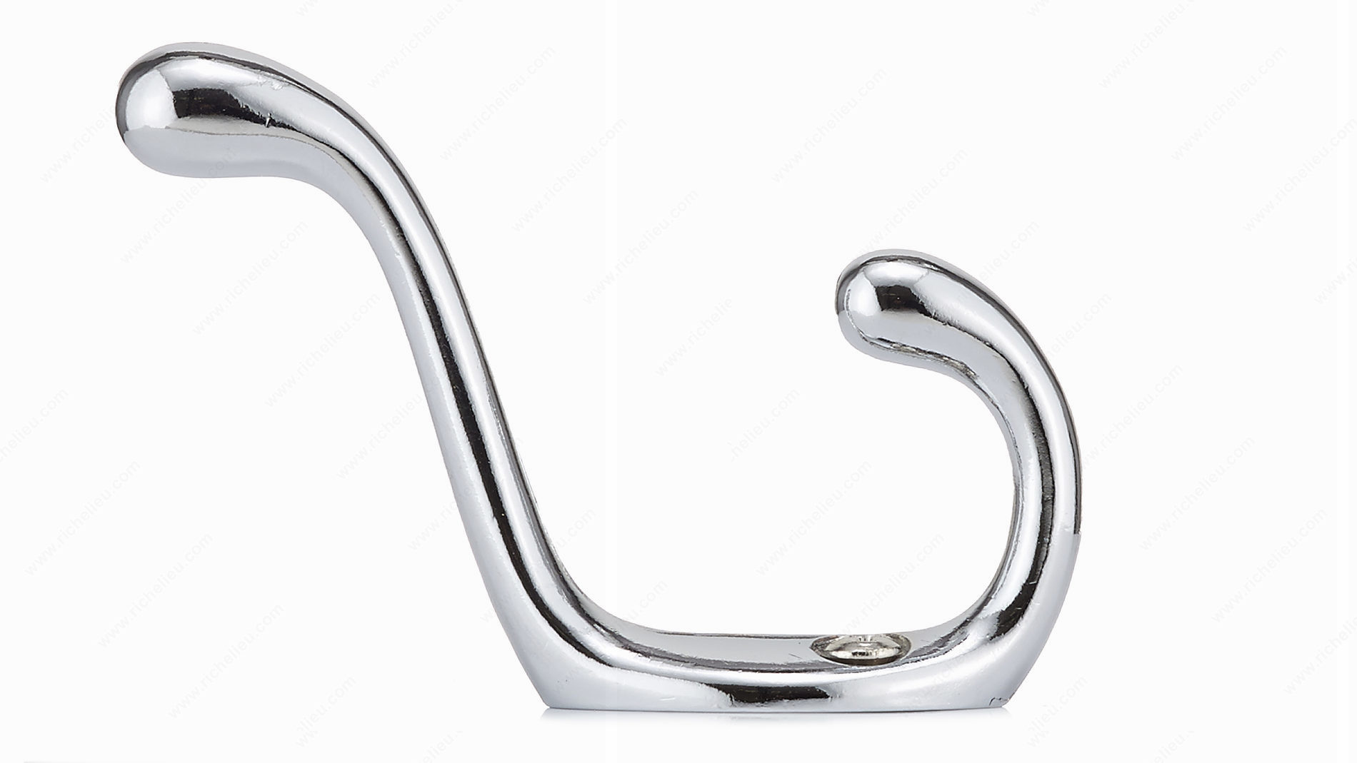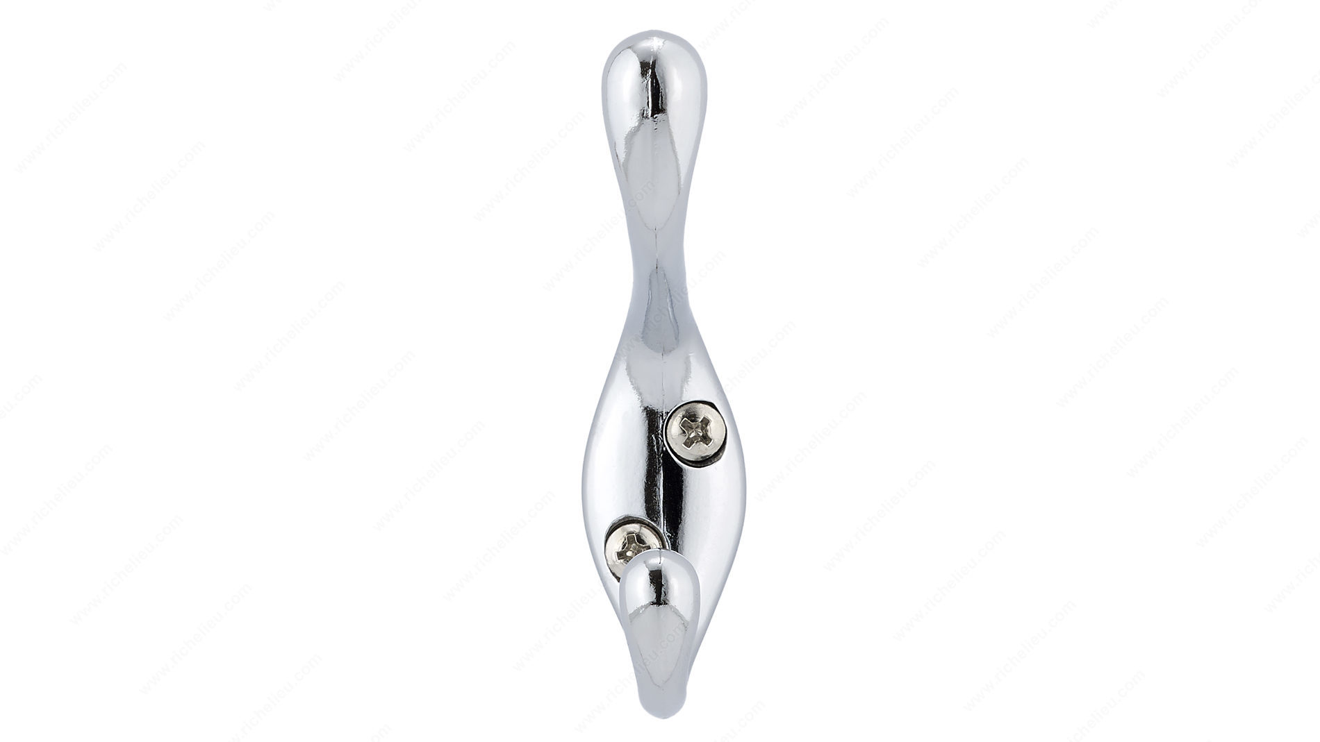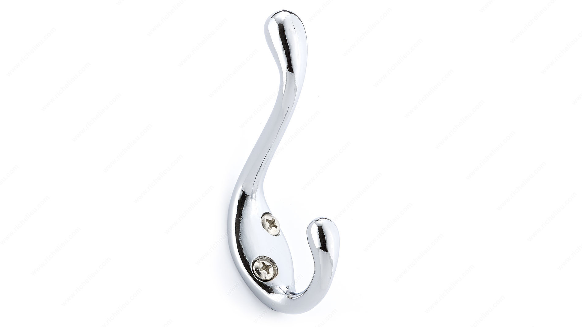 Richelieu BP83443140 3-1/2 in Utility Hook - 834 offers a practical solution for organizing your space while enhancing its aesthetic appeal. Designed for versatility, this double hook is perfect for any room, helping to reduce clutter and enabling you to focus on more important tasks at hand. Finished in sleek chrome with a gray accent, this hook complements a variety of decors while providing robust functionality. Constructed from durable metal, the BP83443140 supports a load capacity of up to 11 pounds, making it suitable for hanging coats, bags, or other everyday items without compromising strength. Its overall height measures 3 11/32 inches, with a projection of 2 3/8 inches and a width of 25/32 inches, ensuring it fits seamlessly into tight spaces. Each hook comes with screws and nails included, facilitating a straightforward installation process. Whether used in a hallway, utility room, or office, Richelieu's utility hook provides an efficient way to maintain an organized environment. Elevate your storage solutions with this stylish and functional accessory, designed to meet the demands of both building professionals and discerning homeowners alike.