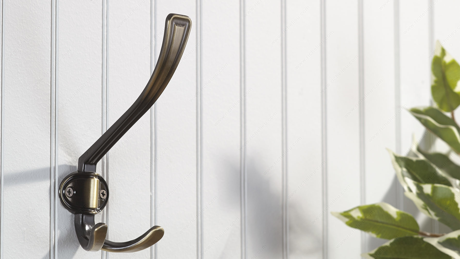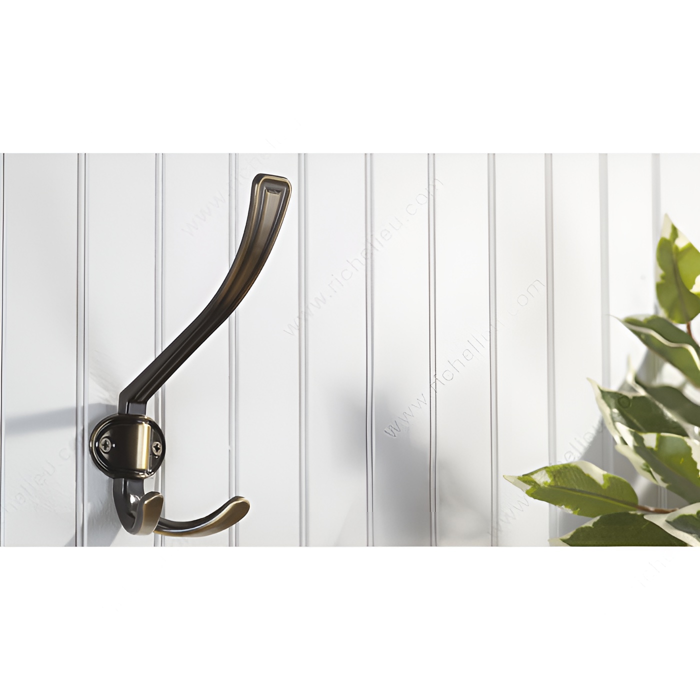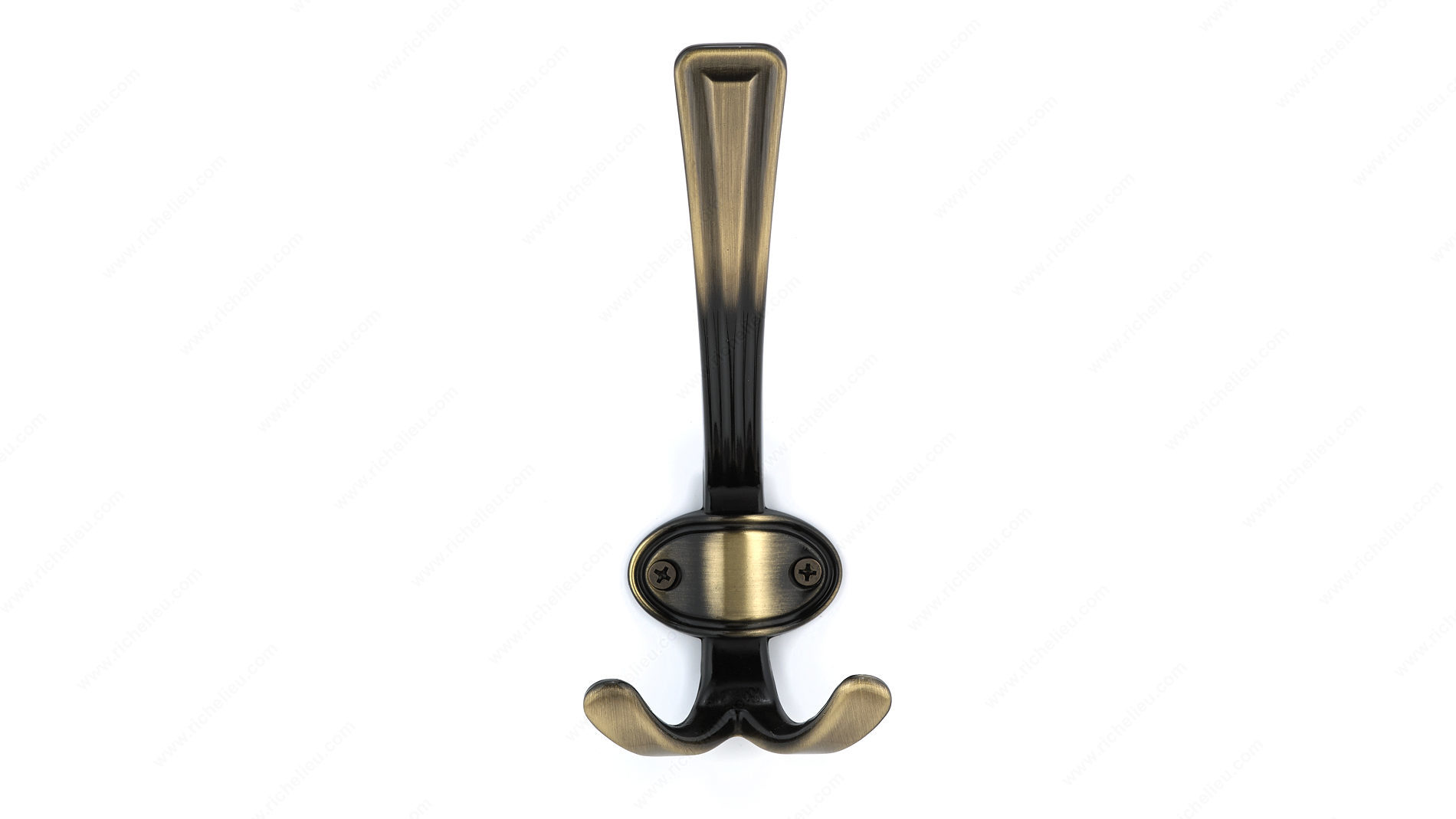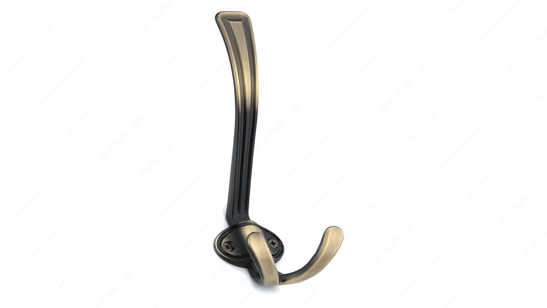Richelieu BP84032AE Classic Metal Hook - 8403 presents a sophisticated solution for enhancing your storage capabilities while adding a touch of elegance to any room. Crafted from durable metal, this classic-style hook features an Antique English finish that beautifully combines gray and chrome accents, making it a versatile addition to various decors. With an overall height of 6 1/2 inches and a projection of 3 1/8 inches, the BP84032AE is designed to maximize clothing storage potential without sacrificing style. The hook boasts a generous load capacity of 22 pounds, ensuring it can securely hold coats, bags, or other items. Its practical design includes a center-to-center measurement of 1 1/4 inches, making installation straightforward. This multiple hook model is not only functional but also stylish, allowing you to make a bold statement while keeping your space organized. Screws are included for easy installation, adding to the convenience of this product. Ideal for residential or commercial settings, the Richelieu Classic Metal Hook is a smart choice for building professionals and discerning homeowners alike, providing both aesthetic appeal and robust utility.