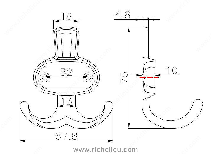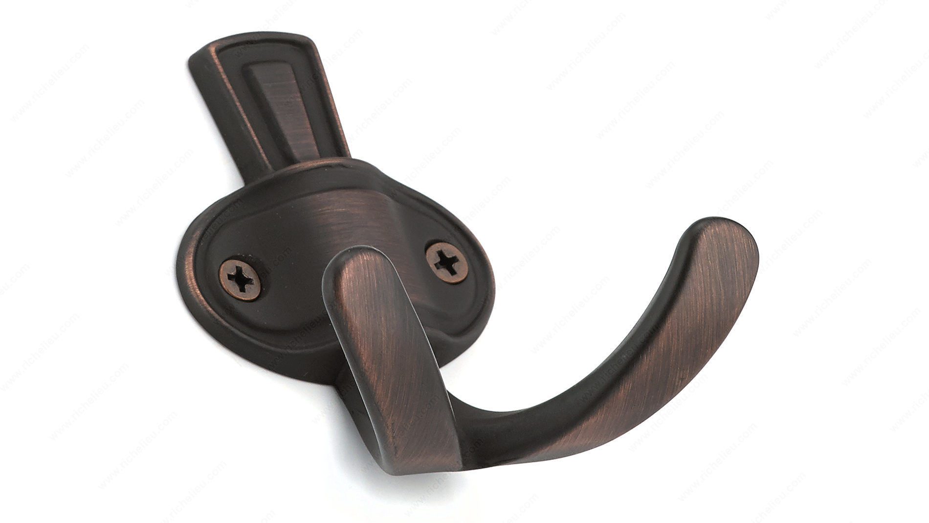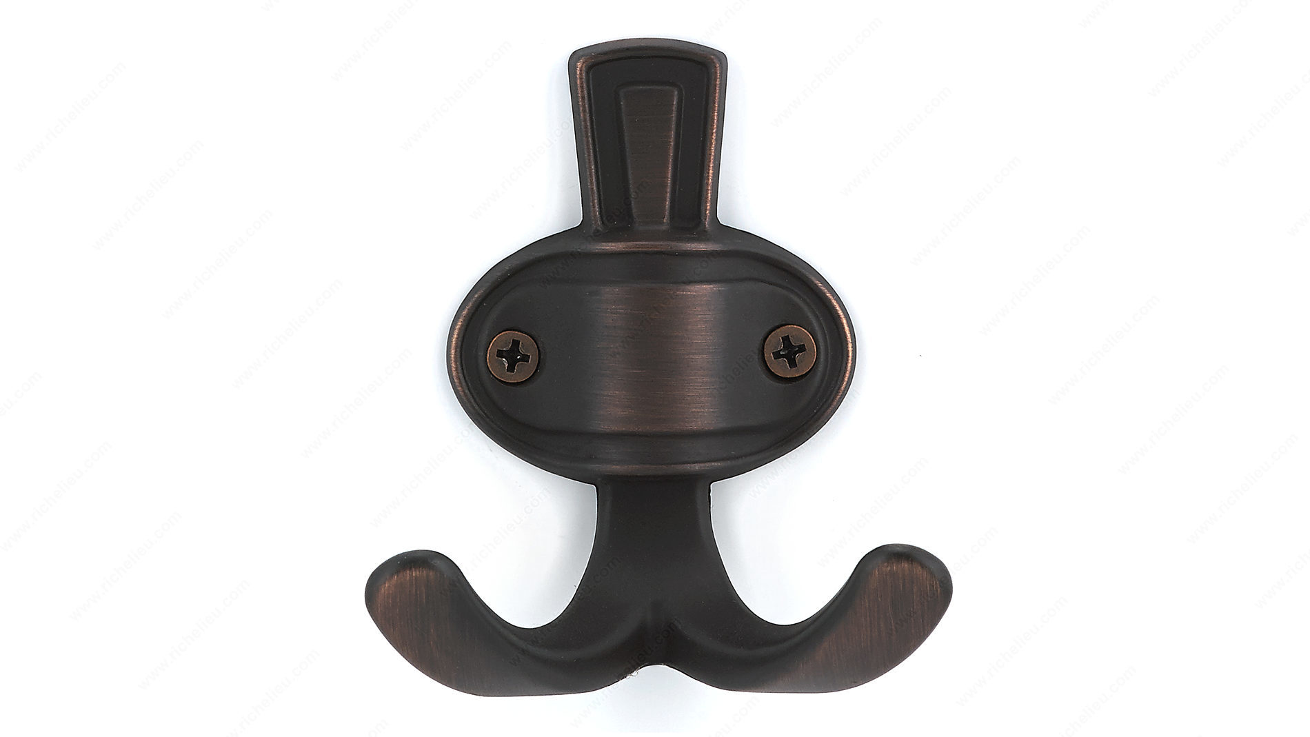Richelieu BP84732BORB Classic Metal Hook - 8473 brings a touch of timeless elegance to your space, making it an ideal choice for traditional interior themes. With its brushed oil-rubbed bronze finish, this double hook adds a sophisticated and nostalgic feel to hallways, bedrooms, or bathrooms. Measuring 2 15/16 inches in height, 2 21/32 inches in width, and projecting 1 25/32 inches, this hook is designed to complement your decor while providing practical functionality. Crafted from durable metal, it boasts a load capacity of 11 lbs, ensuring it can securely hold coats, bags, or towels. The classic style of the hook enhances its versatility, allowing it to seamlessly blend into various design schemes. Each hook comes complete with screws for easy installation, allowing you to quickly enhance your space without the hassle. The rich brown and bronze tones not only add a decorative element but also create a warm ambiance in any room. Whether you're looking to organize your belongings or add a decorative touch, the Richelieu BP84732BORB Classic Metal Hook is a stylish and functional solution that combines both beauty and practicality.