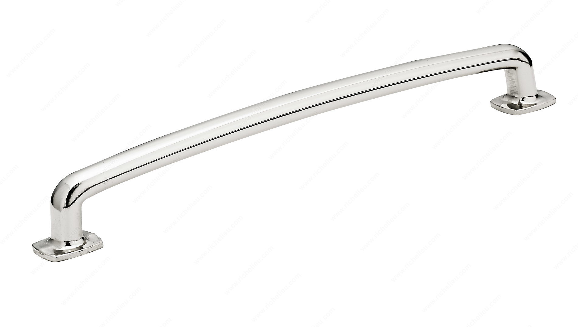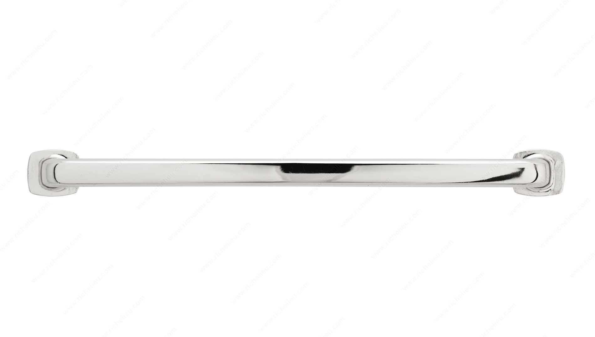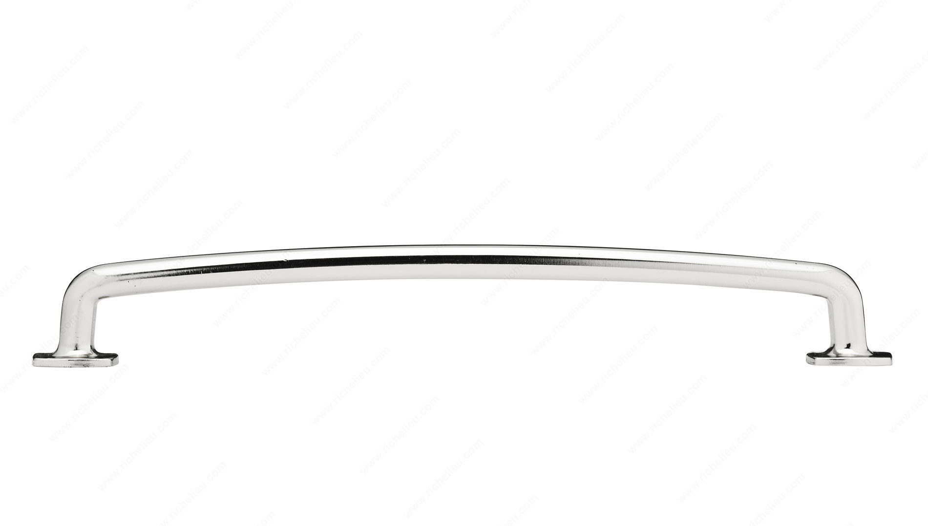 Richelieu BP863192180 Transitional Metal Pull - 863 seamlessly combines style and functionality to enhance any kitchen or bathroom décor. This transitional handle features rounded corners and wide flanges, presenting a sleek silhouette that complements a variety of design aesthetics. Crafted from durable zamak, it boasts a polished nickel finish that not only elevates its visual appeal but also ensures long-lasting quality. With an overall length of 8 7/16 inches and a center-to-center measurement of 7 9/16 inches, this pull is an ideal choice for cabinets and drawers alike. Its projection of 1 3/16 inches allows for easy gripping while maintaining a streamlined look. The subtle gray and chrome color palette adds a touch of sophistication, making it a versatile addition to any space. Included with the pull are 8/32 inch screws for convenient installation, ensuring that upgrading your hardware is a hassle-free process. As part of the complete 863 collection, this pull can be paired with other pieces to create a cohesive design throughout your home. Whether you are a building professional or a knowledgeable homeowner, the Richelieu BP863192180 is a perfect choice for those seeking quality and style in hardware solutions.