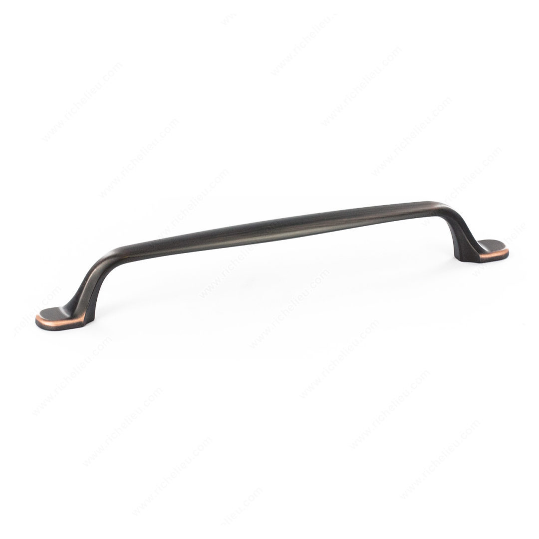 Richelieu BP8710256BORB Traditional Metal Appliance Pull - 8710 is a sophisticated choice for enhancing the functional aesthetics of your kitchen or pantry. This appliance pull, designed with a center-to-center measurement of 10 1/8 inches, is perfect for a variety of applications including refrigerators, wide drawers, and tall doors. Crafted from durable zamak, this pull features a brushed oil-rubbed bronze finish that adds a touch of elegance to any design. The overall dimensions of 12 1/4 inches in length, 1 11/16 inches in projection, and a width of 15/16 inches ensure a sturdy grip and a refined look. The traditional style complements both modern and classic interiors, making it a versatile addition to your décor. Installation is straightforward with the included 8/32 inch screws, allowing you to enhance your cabinetry with ease. The rich brown and bronze color scheme not only elevates the visual appeal but also blends seamlessly with various color palettes. Whether you are a building professional or a knowledgeable homeowner, the Richelieu BP8710256BORB appliance pull is an excellent choice for those looking to combine style and functionality in their spaces.